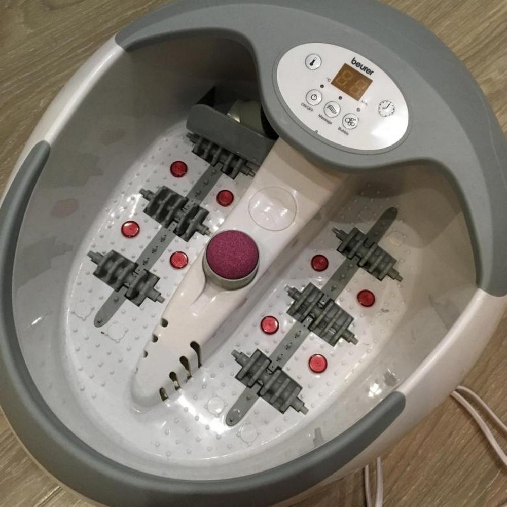 Разработанная производителем «Beurer» ванночка отличается возможностью использования без воды, что делает эксплуатацию более универсальной и удобной. Совмещаются два релевантных типа массажа: вибрационный и пузырьковый.