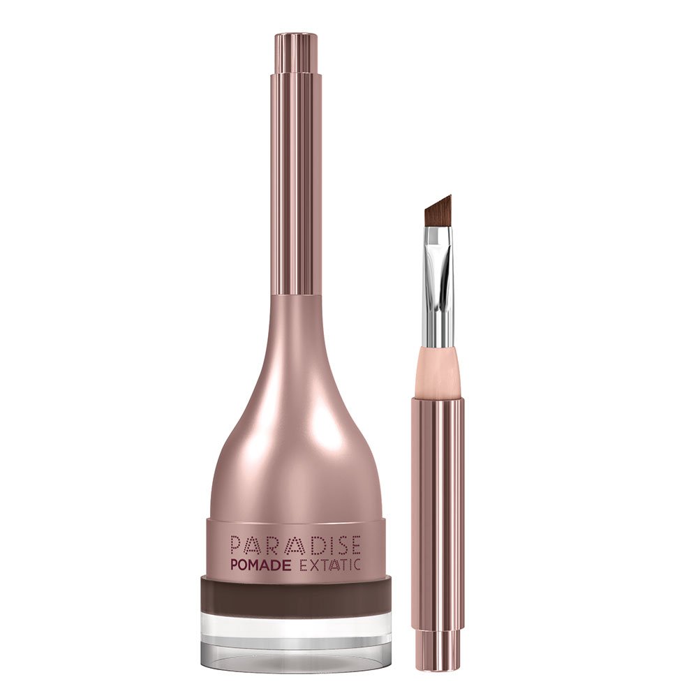 L’Oreal Paris Paradise Pomade Extatic представляет собой водостойкую, долго носящуюся формулу, которая выпускается в двух оттенках: светлый блондин и темный брюнет. Она имеет мягкую, кремообразную текстуру, которая гладко и равномерно наносится, заполняя все редкие участки для придания бровям более объемного вида. Встроенная кисточка позволяет легко наносить помаду непосредственно на брови.