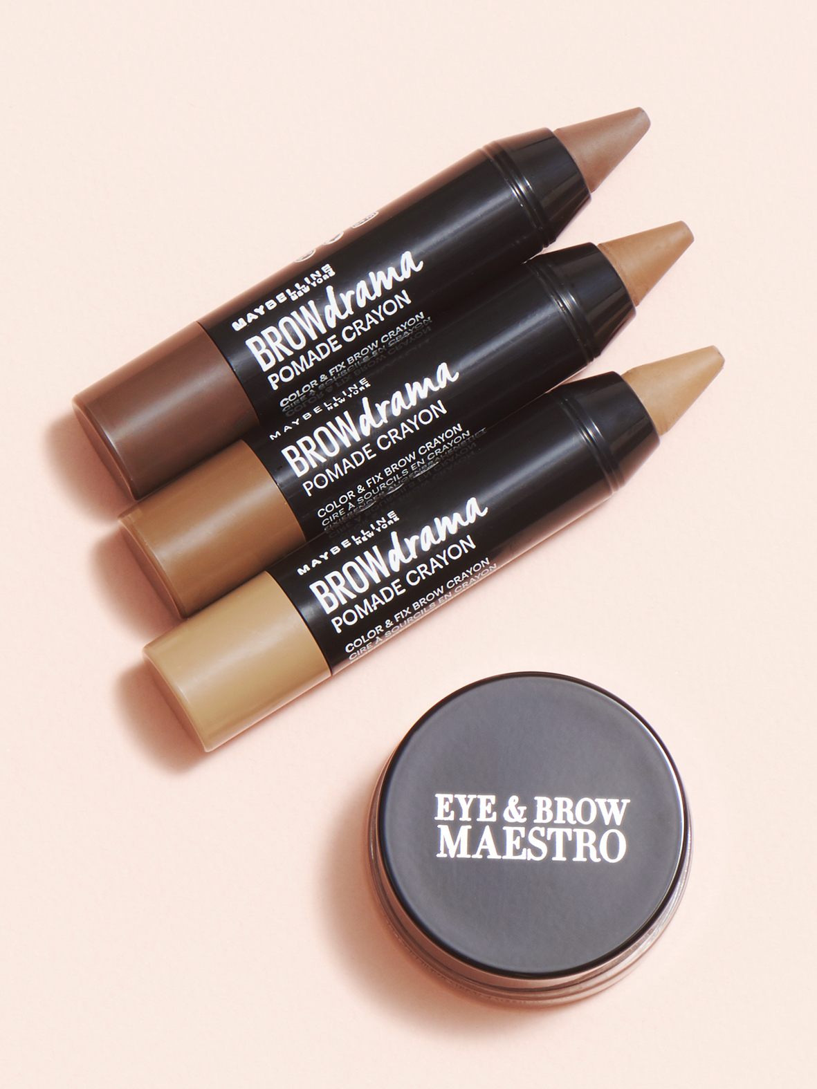- Maybelline: имеет форму стика, автоматически затачивающегося при необходимости. Создает эффект густых волосков, отлично закрашивая имеющиеся пробелы. Текстура плотная, пигмент достаточно легкий.