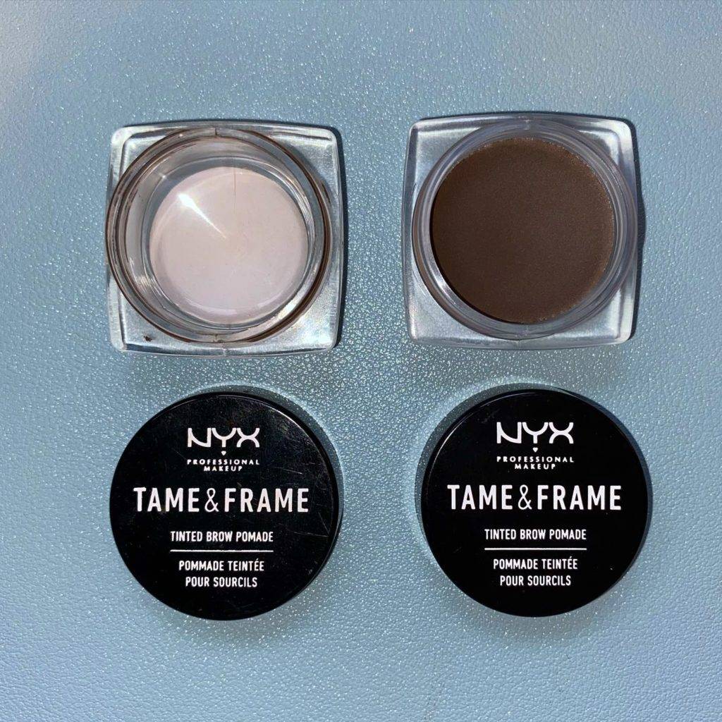 NYX Tame & Frame. Эта помада для бровей от NYX Cosmetics представляет собой водостойкую, долго носящуюся формулу, которая выпускается в четырех оттенках: для блондинок, брюнеток, рыжих и черных. Она имеет мягкую, кремовую текстуру, которая гладко и равномерно наносится, заполняя все редкие участки для придания бровям более объемного вида.