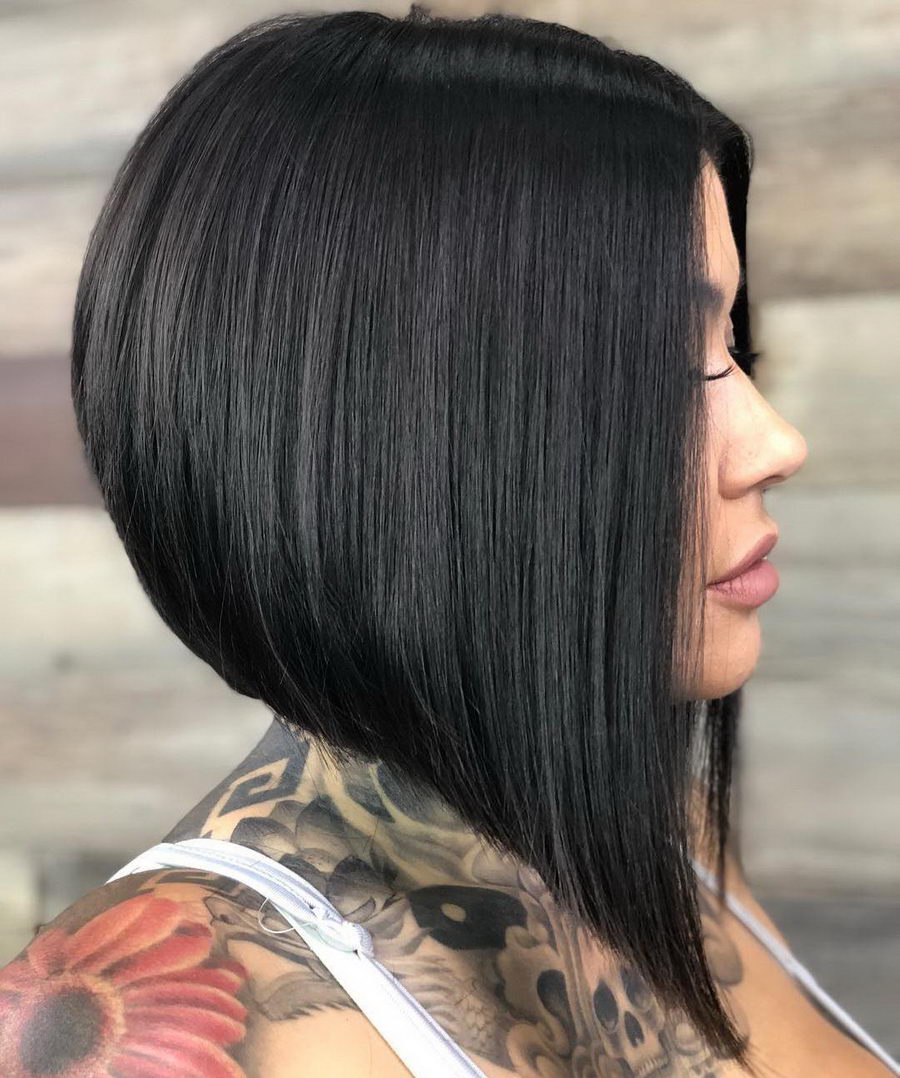 Асимметрия омолодит на пару лет, визуально акцентирует внимание глаза. Градуировка возле лица сведет к минимуму угловатость форм при треугольной или же квадратной форме. Косая челка в 2022 году не сдаёт свои позиции в топе стрижек