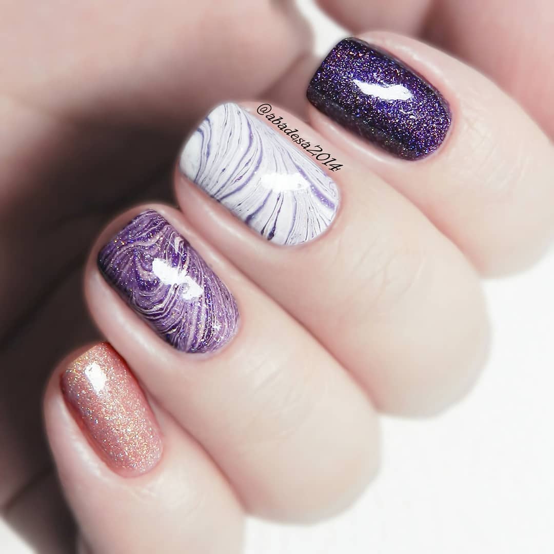 Этот способ наиболее полно раскрывает себя на длинных ногтях, но и для коротких ноготков он тоже подходит, если не сочетать много разных оттенков. Перед созданием водного рисунка необходимо нанести лак на ногти, просушить его.