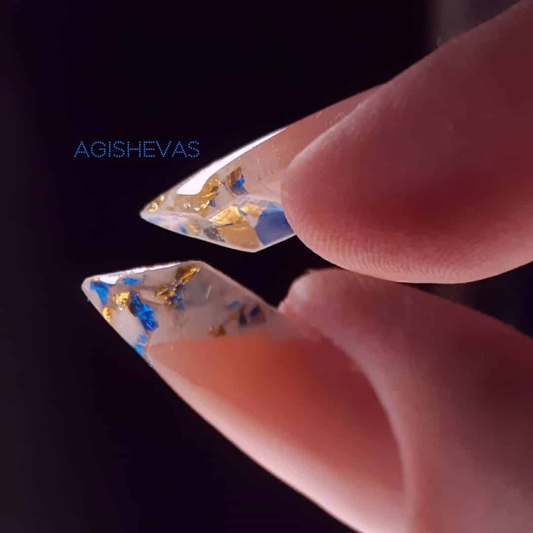 - Моделирование. На данном этапе искусственные ноготки начинают приобретать более эстетичный вид. Ногти приобретают задуманную изначально форму с помощью пилочки или специальной фрезы. Спиливаются излишки материала, при этом необходим чуткий контроль длины и формы ногтей, толщины и наличие апекса («холмика»).
