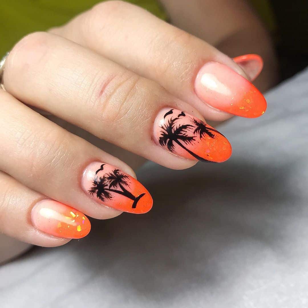 Оранжевый. Данный тон нравится многим за его отличную сочетаемость с темным дизайном, а также с другими яркими лаками. Очень привлекательно смотрятся коралловые и тыквенные оттенки.