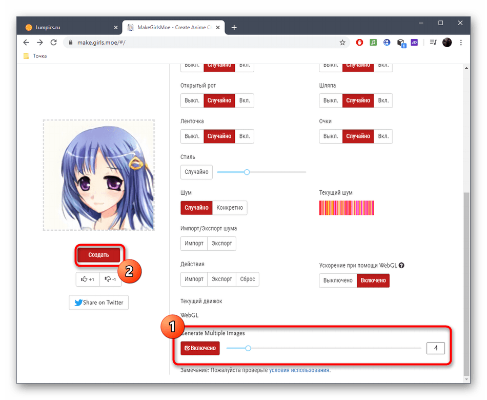По желанию можно задать количество одновременно сгенерированных персонажей, а затем снова кликнуть на «Создать».