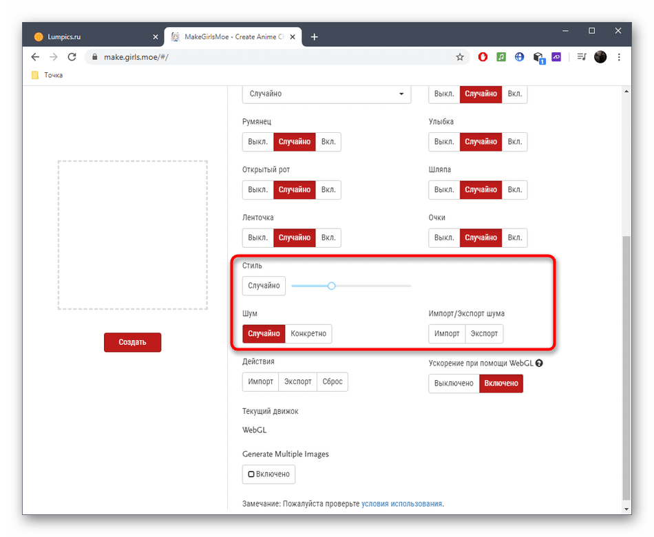 Стиль и шум — абсолютно случайные параметры, которые настраиваются по личным предпочтениям пользователя.