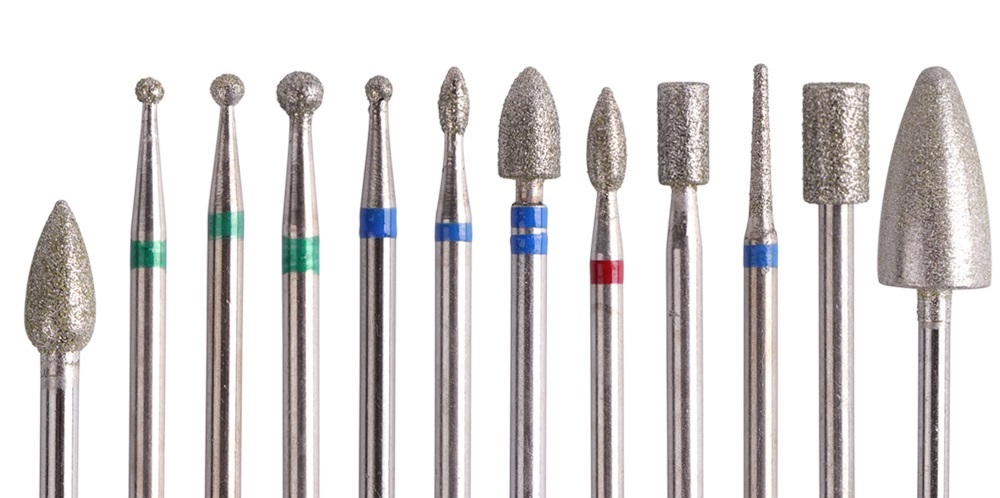 Изготавливаются путем напыления (наклеивания) алмазной крошки на металлическую основу-болванку. Алмазные фрезы являются самыми популярными среди мастеров ногтевого сервиса. Это обеспечено многообразием их форм и функций, универсальностью абразива для работы с различными типами кожи.