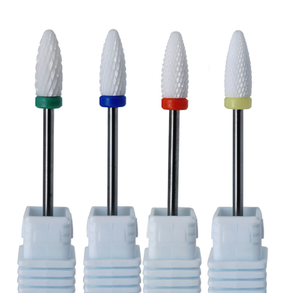 Керамические – отличаются наличием небольших «ямок» и выпуклостей на поверхности, что обеспечивает отличный результат после обработки ногтей. Такие насадки могут использоваться для проведения всех манипуляций в рамках аппаратного маникюра, ими только нельзя чистить пространство под ногтем.