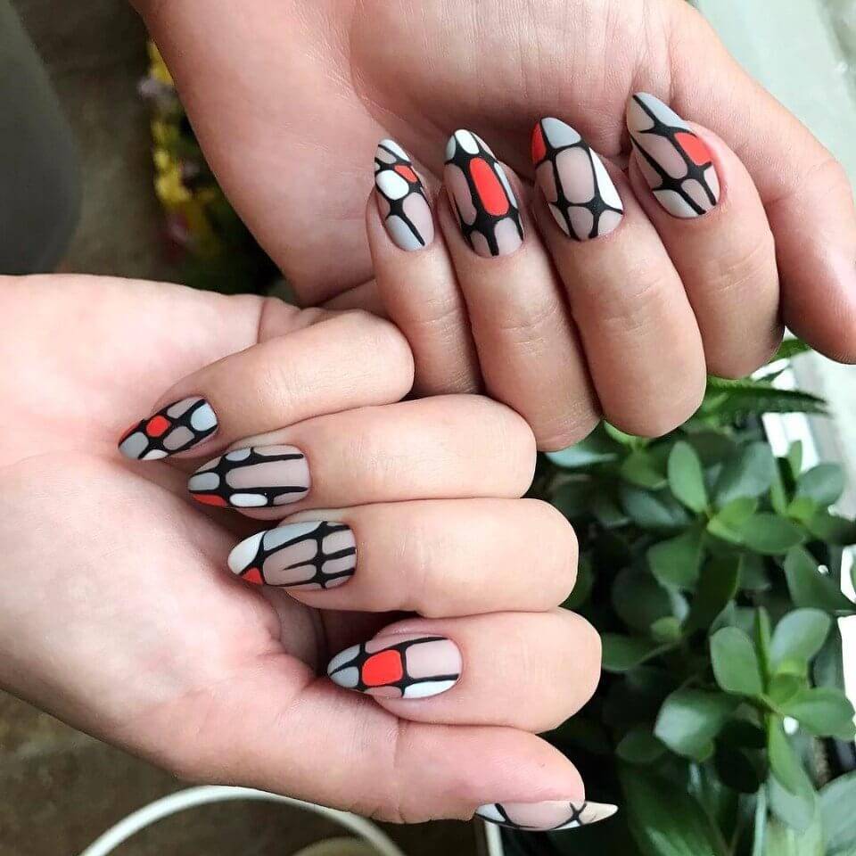 Отдельно стоит отметить, что геометрический рисунок считается универсальным. Это объясняется тем, что он отлично смотрится не только на длинных ноготках, но и на коротких. Кроме того, их форма в данном случае не имеет никакого значения. Главное – подобрать правильный дизайн, который только подчеркнет красоту рук и ногтей. Поэтому если вы все еще сомневаетесь, подойдет ли вам геометрия, то обязательно попробуйте хотя бы сделать акцент на одном ноготке.