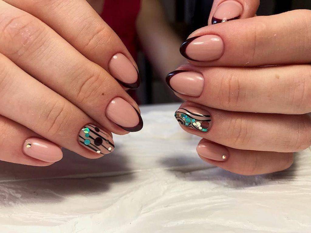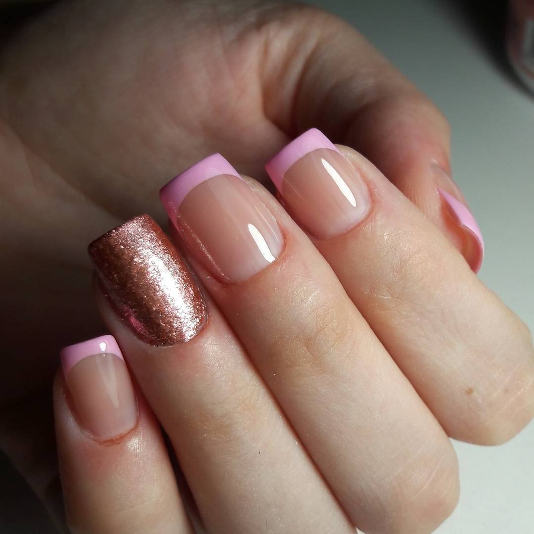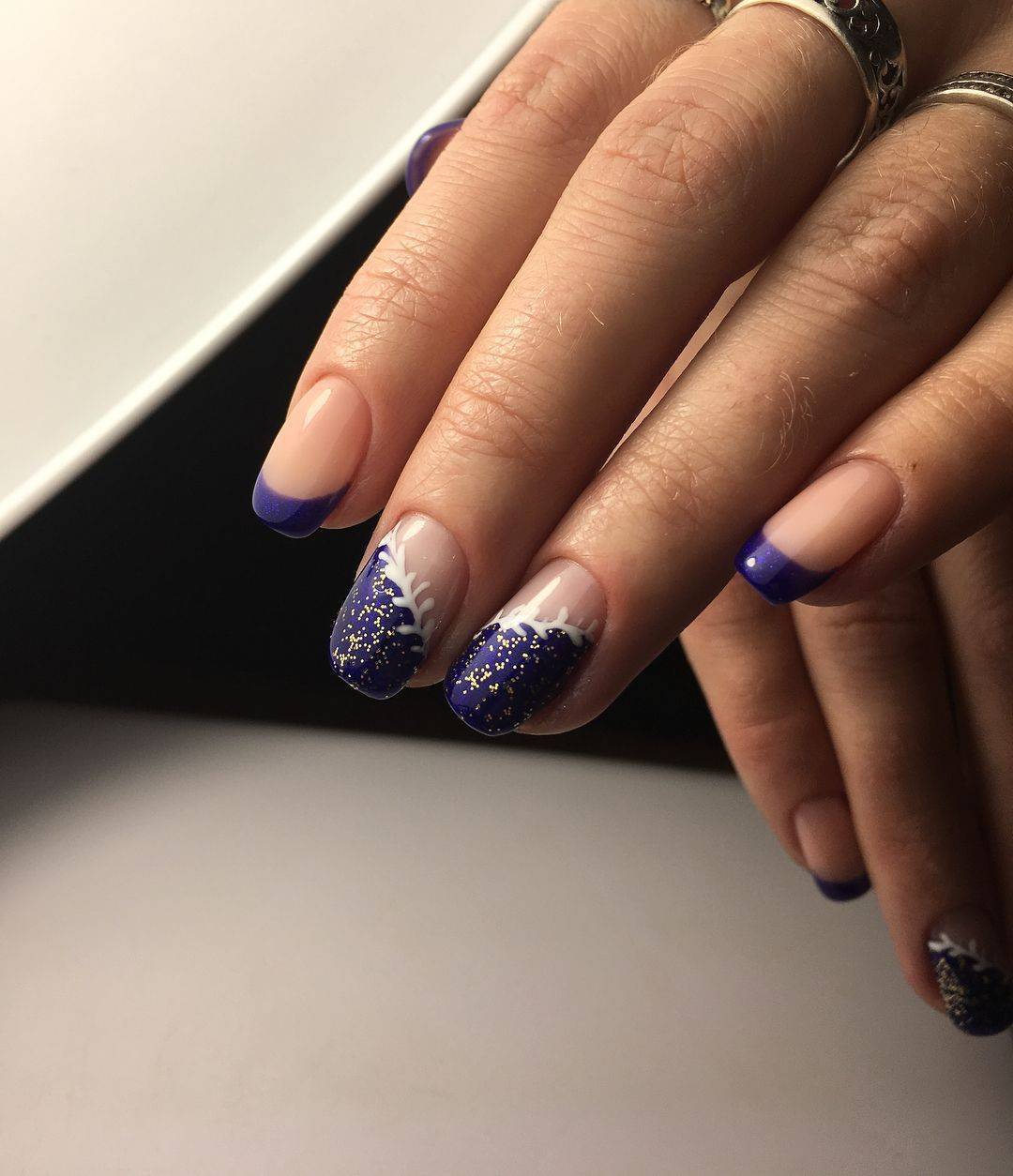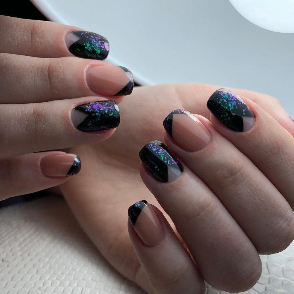 Существует множество интересных идей френча для коротких ногтей. С помощью блестящего дизайна можно добавить немного дополнительного мерцания в жизнь. Френч включает нейтральный фон, темные кончики и блеск, который распределяется неравномерно.