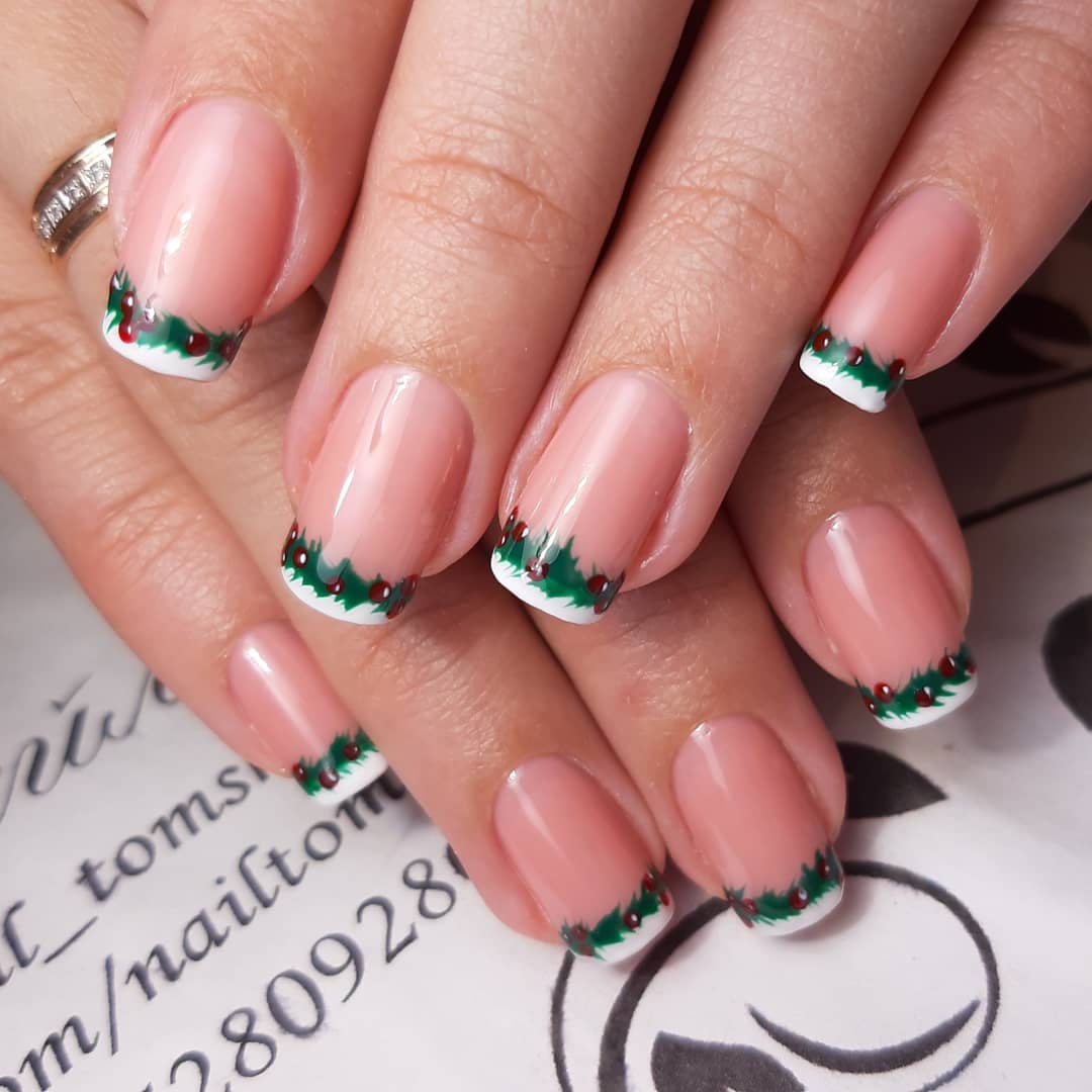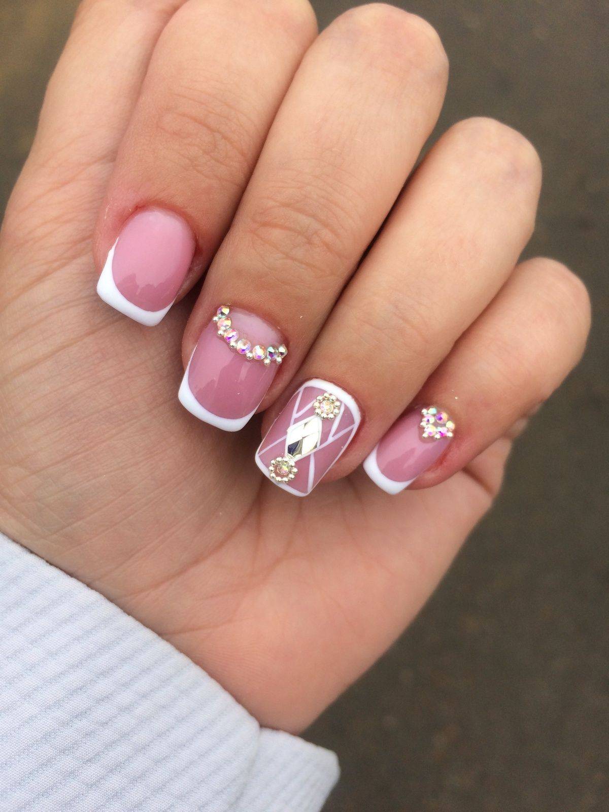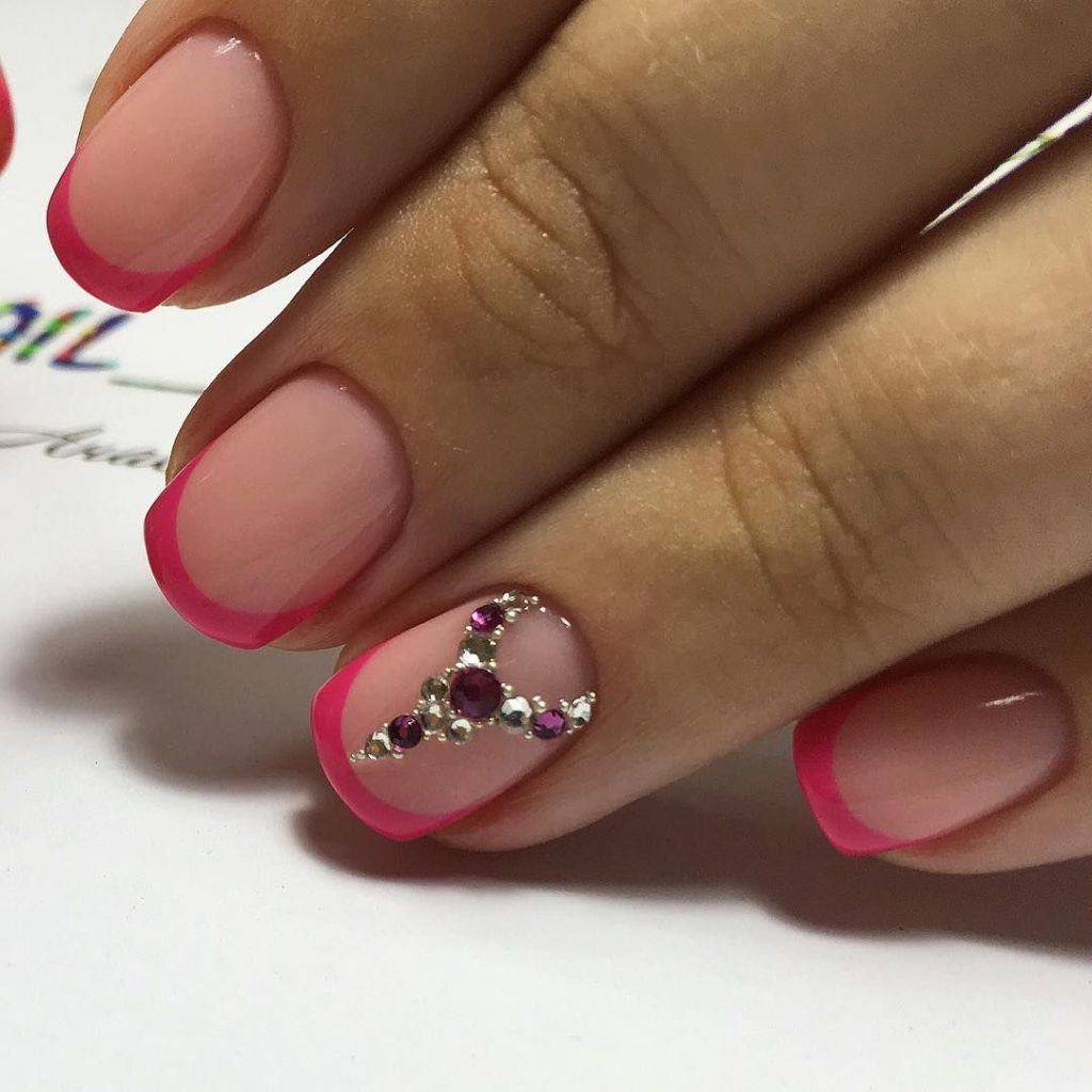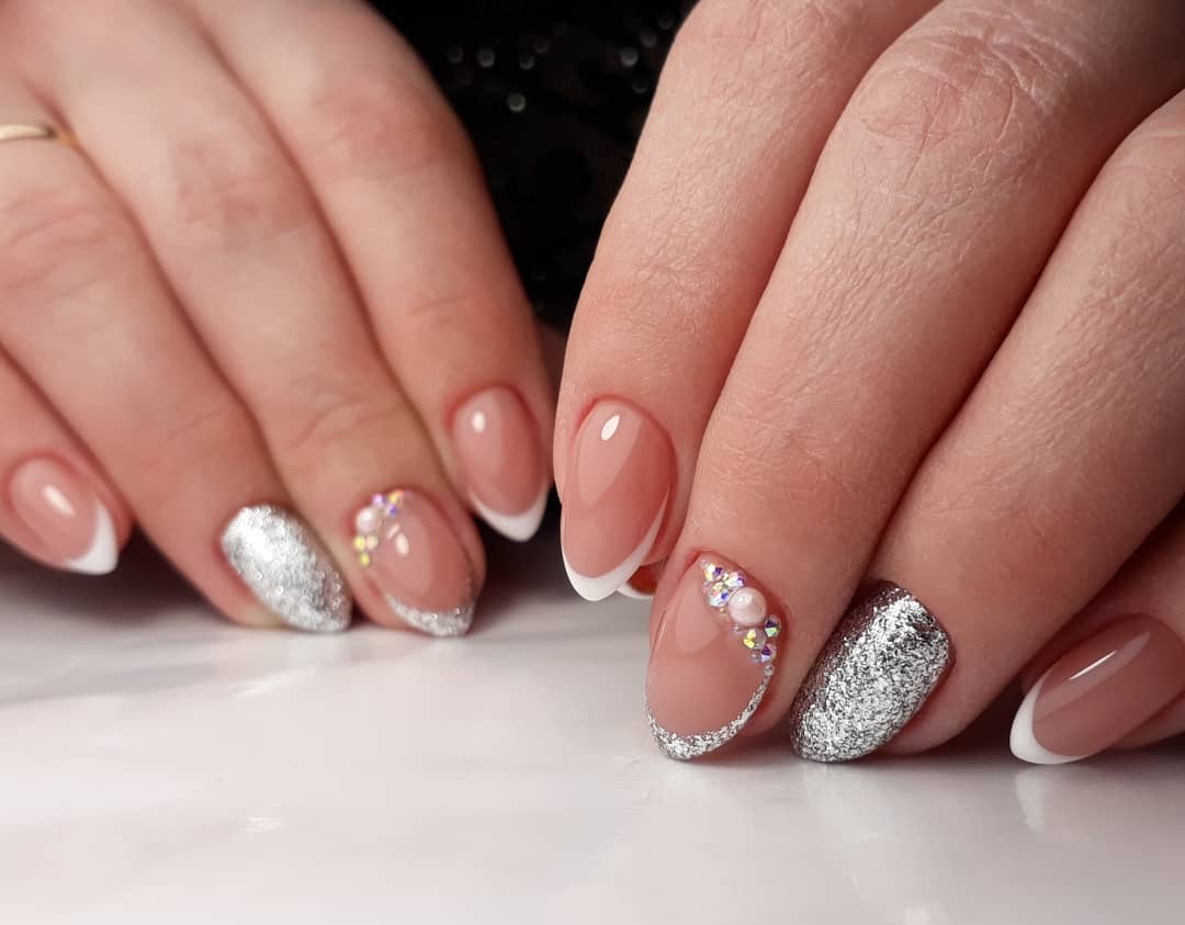 В данном случае французский маникюр для этого подходит идеально. При желании его можно украсить россыпью страз или же небольшим количеством блесток.
