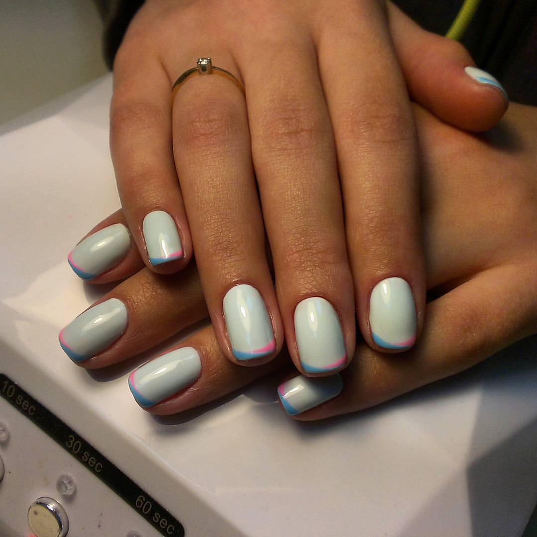 - Френч лучше оформлять с помощью схожих оттенков, чтобы избежать резких контрастов.
