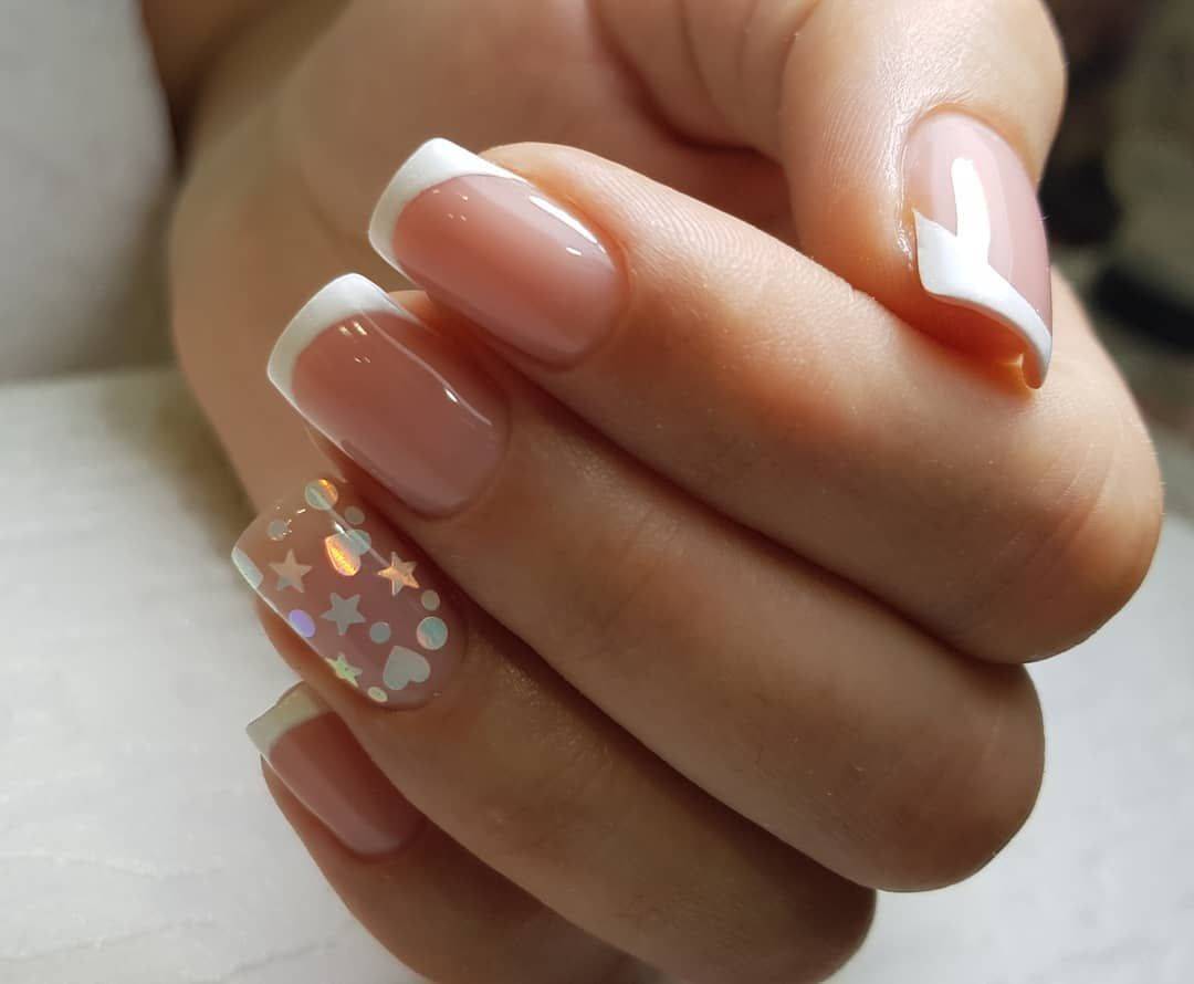 Классический дизайн французского маникюра в белом всегда актуален, но все же иногда хочется экспериментов и неожиданных решений.