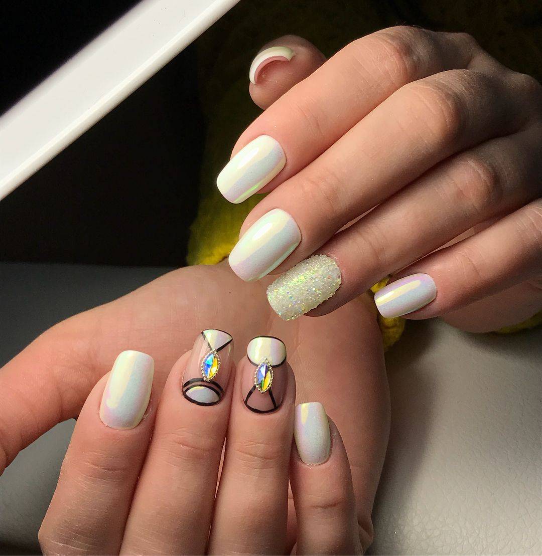 - Геометрический повседневный маникюр создается при помощи различных геометрических фигур, элементов, узоров, мозаики;