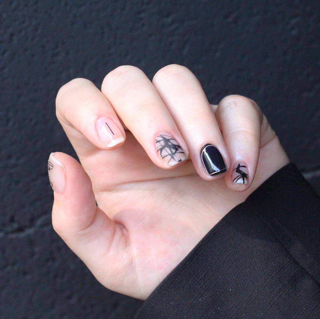 Скотч-лента является основным средством создания геометрических рисунков, которые не выйдут из моды, кажется, никогда. Это тонкая самоклеящаяся ленточка, которая позволяет выделить границы цветов или просто может быть отличительной чертой на однотонном слое французского лака. Такой рисунок может быть как главной деталью, так и фоном. Такой стиль довольно универсален и подходит для повседневного ношения.