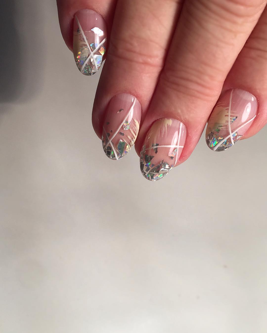 - В 2019 году появился модный тренд – объединение френча с другими техниками. К примеру, он отлично сочетается с битым стеклом.