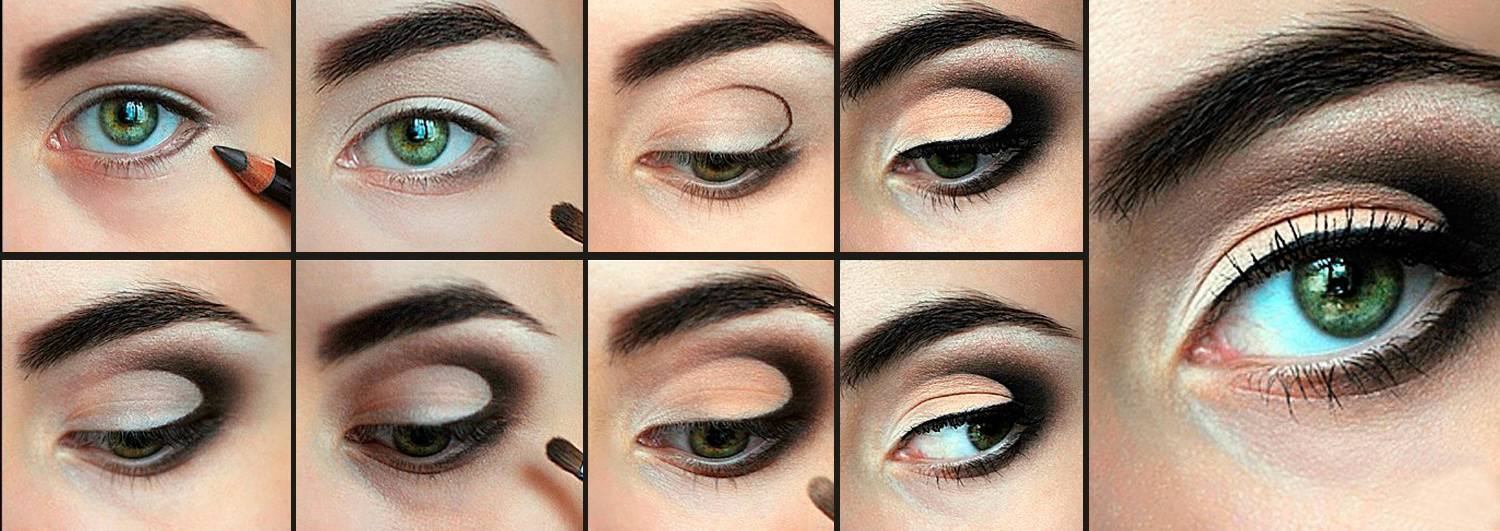 • Хитрый женственный взгляд гарантирован. Красивый макияж глаз фото демонстрирует весь процесс пошагово.