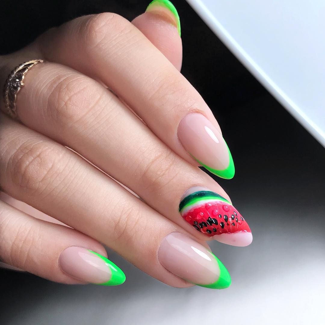 Сочные фрукты – прекрасная идея для дизайна ногтей жарким летом. Такой маникюр отлично сочетается с летними нарядами и прекрасно подойдет для отпуска. Яркие цвета поднимут настроение и в случае, если погода на улице не радует. Нарисовать дизайн в виде арбуза или киви можно самостоятельно – воспользуйтесь уже готовыми техниками. Воспользуйтесь идеями ярких и сочных маникюров для дизайна ногтей, и создавайте свои стильные рисунки летом. Желаем мастерам невероятного вдохновения, безграничной фантазии и успешного творчества – и все у вас получится!