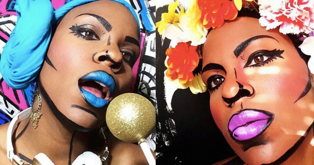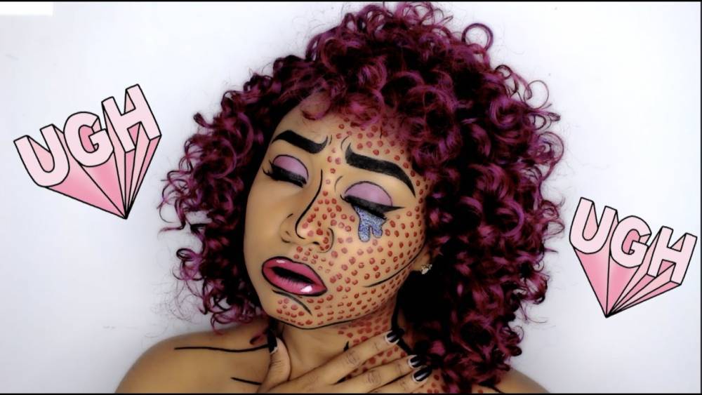 Такой поп-арт грим можно использовать для яркой и интересной фотосессии или как макияж на хэллоуин.