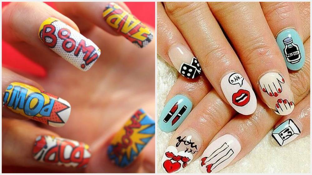 Завершить красочный образ поможет интересный маникюр с принтами, картинками из комиксов или персонажами мультфильмов.