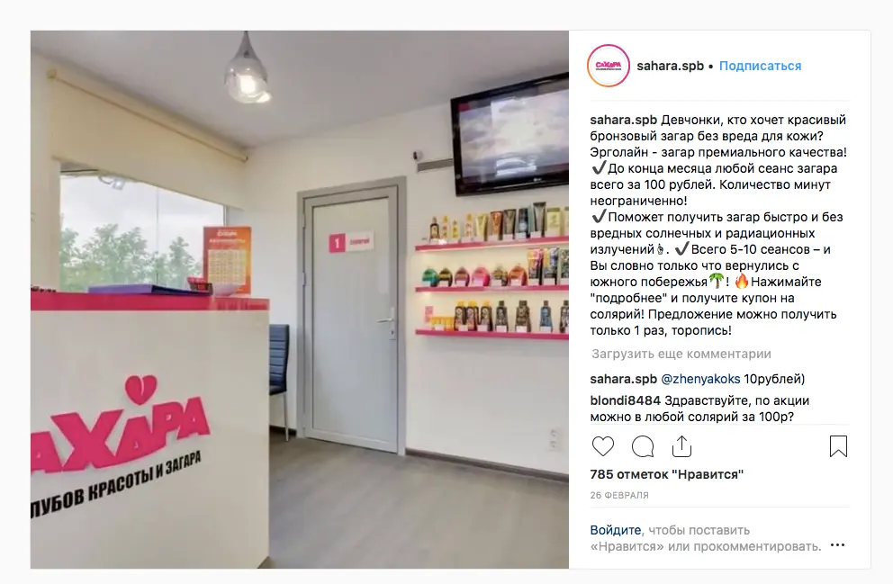 Плюс такого вида рекламы — добавление кнопки, позволяющей осуществить он-лайн запись, непосредственно в рекламную публикацию. Так, вы сокращаете путь к записи в салон, чтобы получить услугу мастеров. Привлекает клиентов возможность сейчас узнать «окошко» для записи к мастеру, стоимость косметической процедуры.
