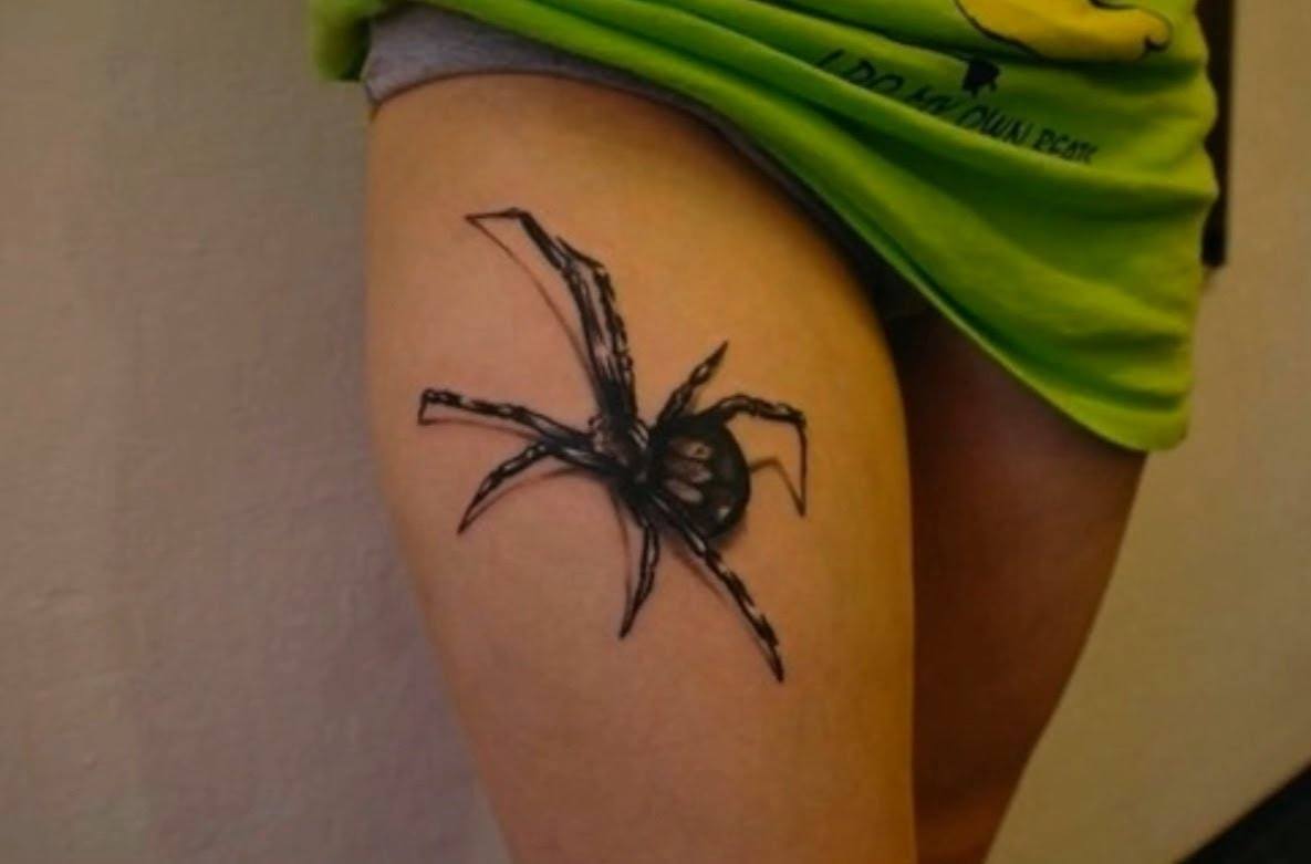 - Выгоднее всего рисунок будет смотреться на ноге, а точнее на бедре. Это прекрасное поле для творчества. Опытный татуировщик при помощи наколки сможет удачно выделить изгиб бедра или же замаскировать полноту. Но такую татуировку можно увидеть только в теплое время года, когда ее обладательница будет ходить с открытыми ногами.