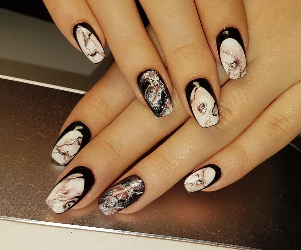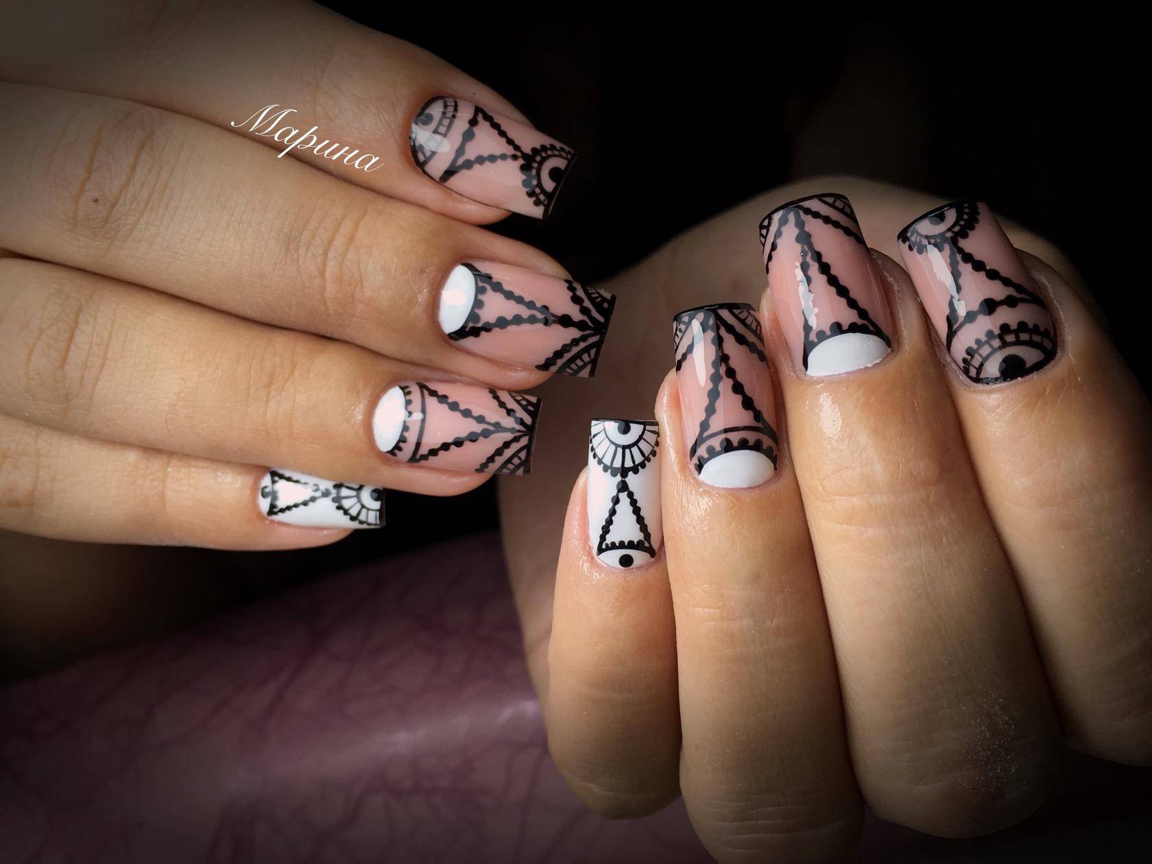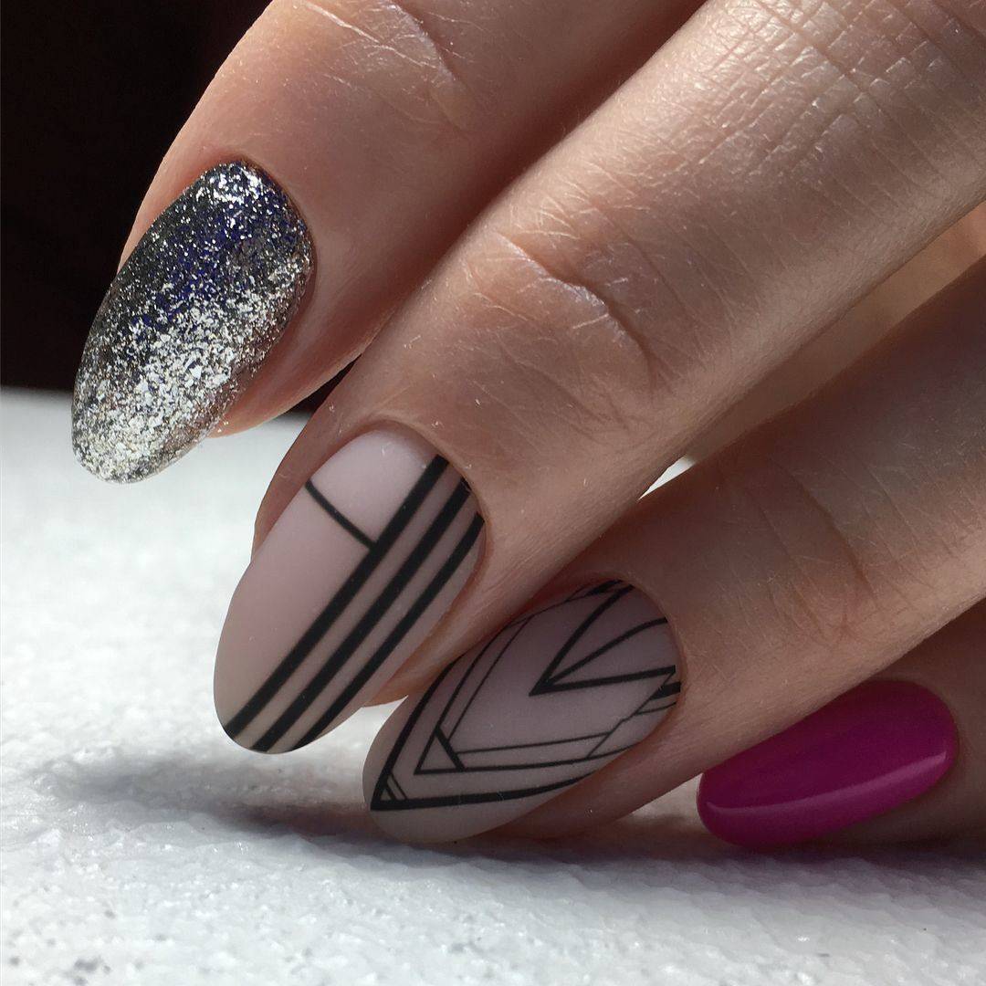 Добавление необычных дизайнов, как геометрия или абстракция, точек или произвольных линий сделают маникюр особенным. Даже простое покрытие с чередованием черного и белого будет красиво смотреться на ногтях.