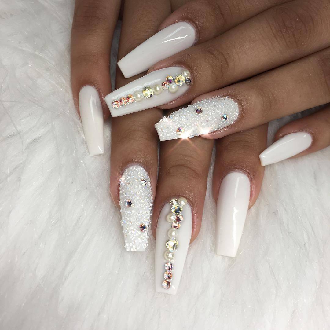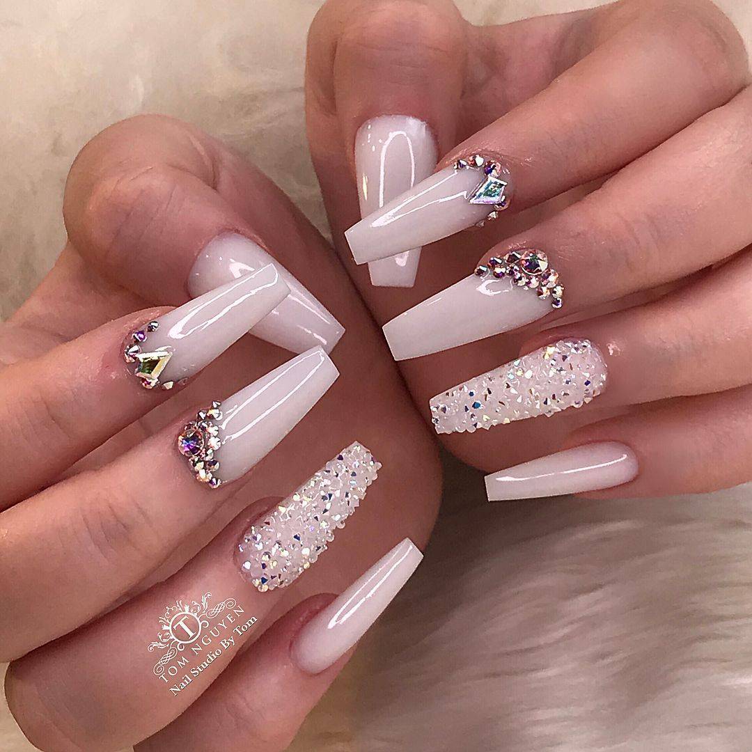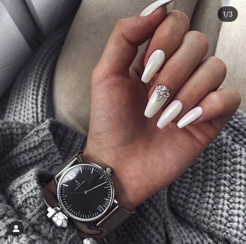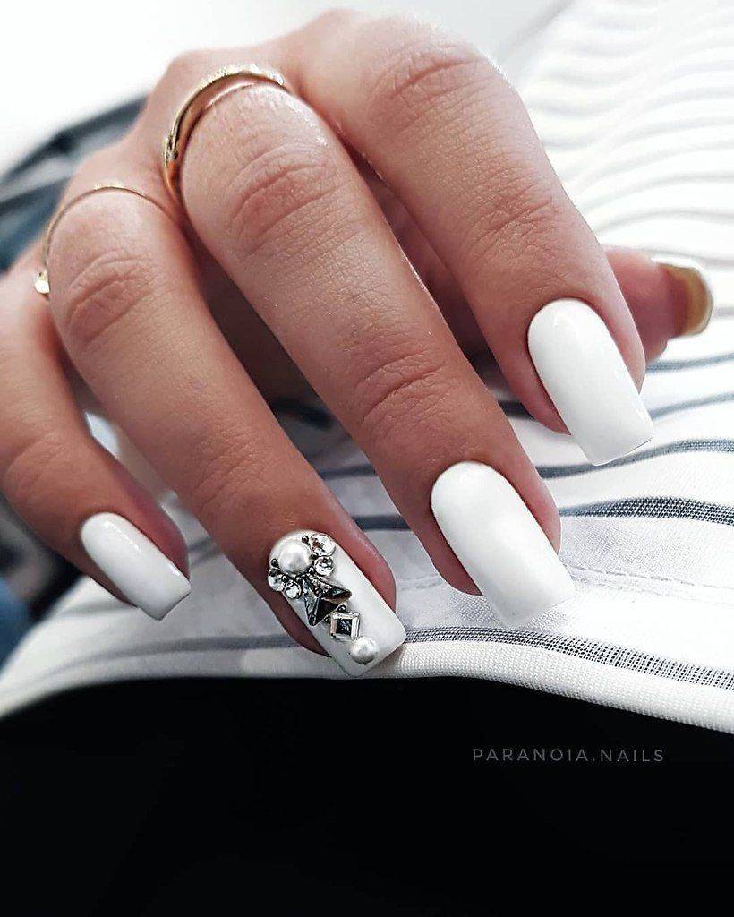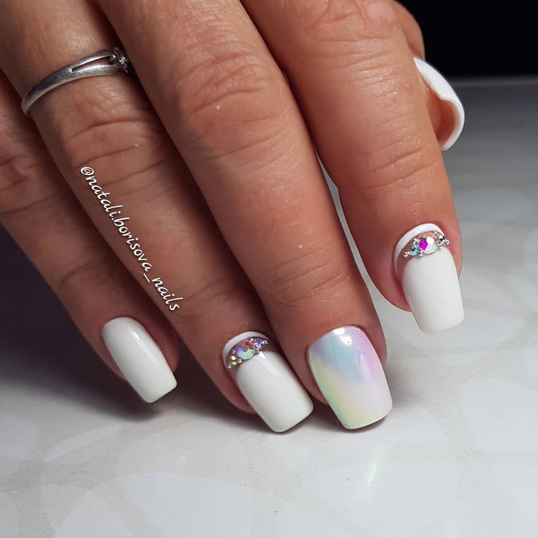 Такой декор, как стразы способен преобразить маникюр и изменить визуальное восприятие любого нейл-дизайна. Наличие всего одного-двух камешков позволит ногтям стать более выразительными и представит свою обладательницу в новом свете. На белом фоне стразы смотрятся особенно нежно и привлекательно. Хотите создать более женственный и романтический образ? Стразы и белый лак станут в этом случае вашей «золотой рыбкой».