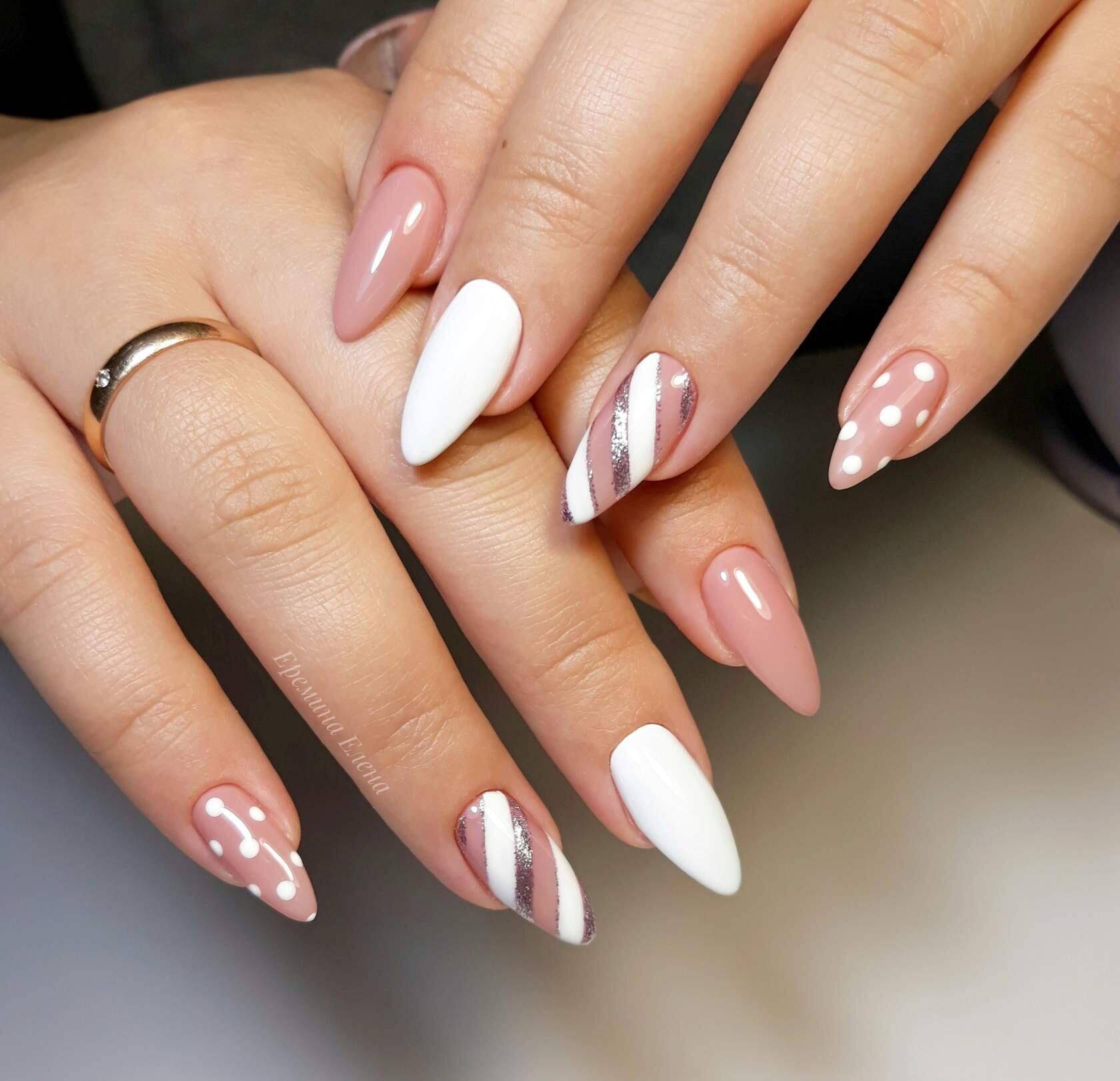 Белый с бежевым часто встречаются в сочетаниях одежды, но и в ногтевом дизайне этот тандем выглядит стильно.