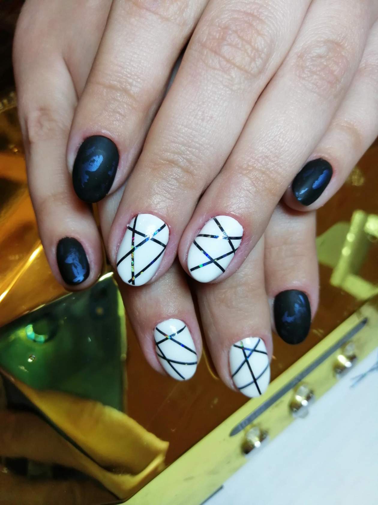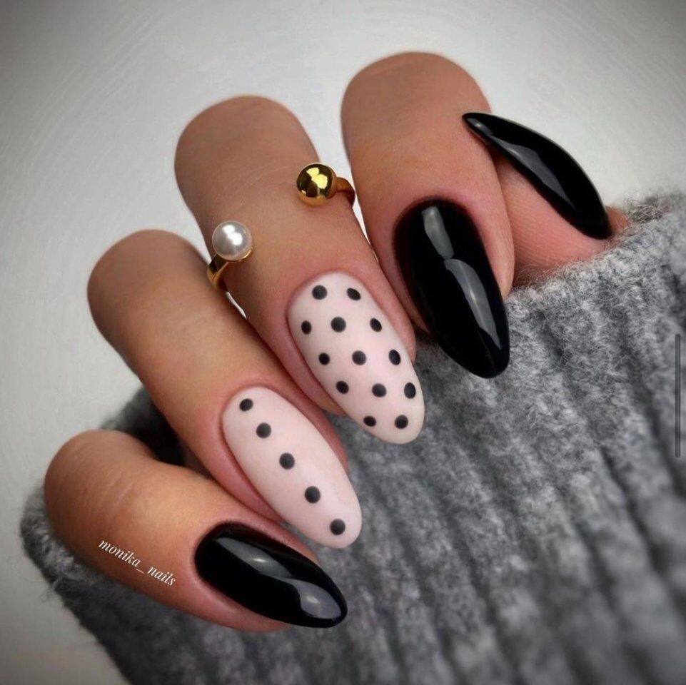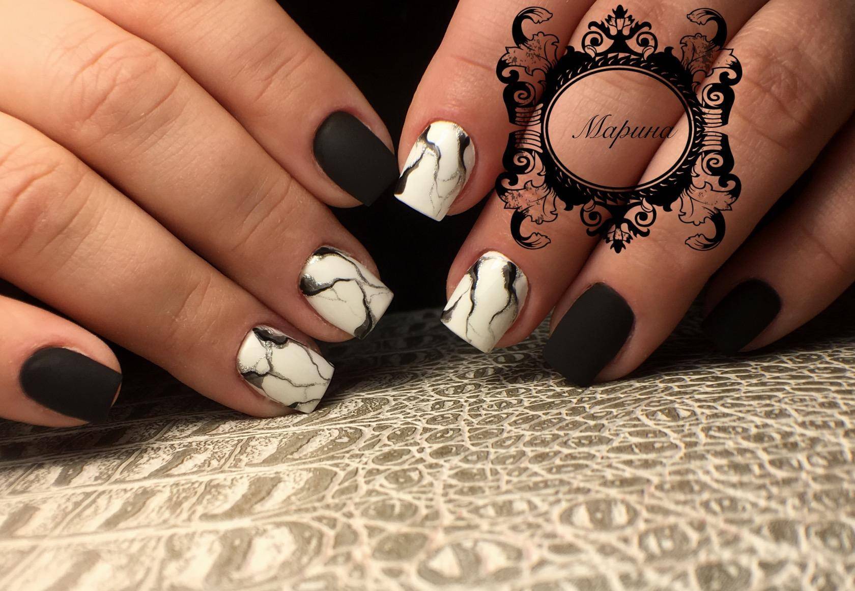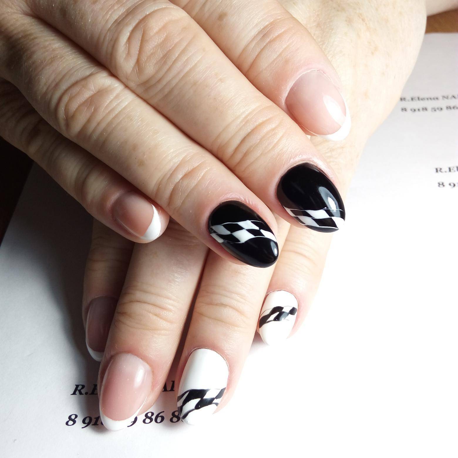 Сочетание чёрного и белого лака в геометрическом дизайне 2021