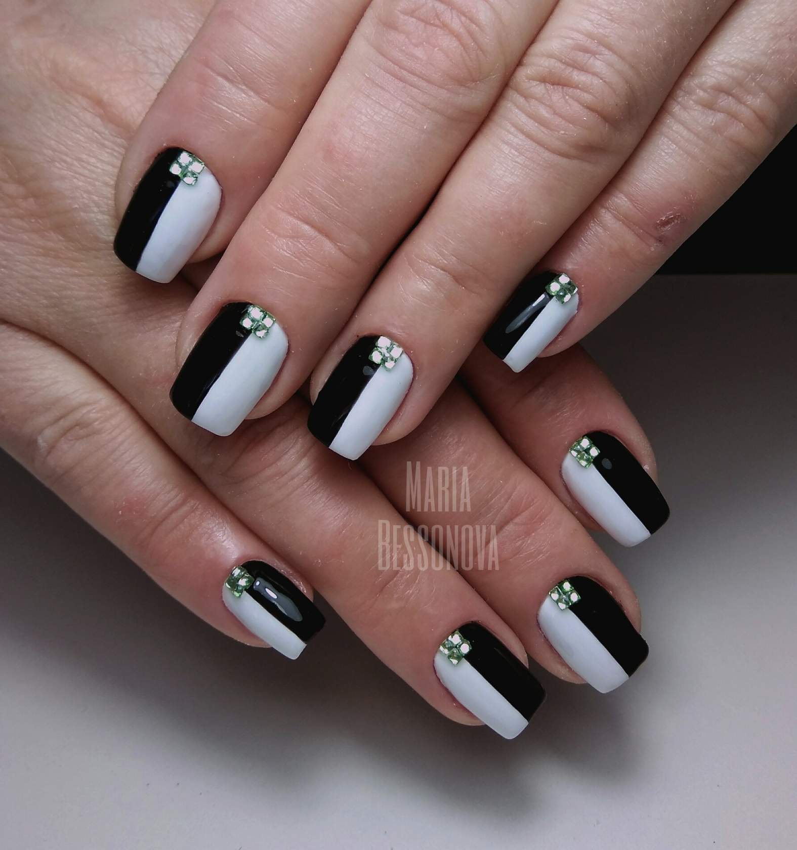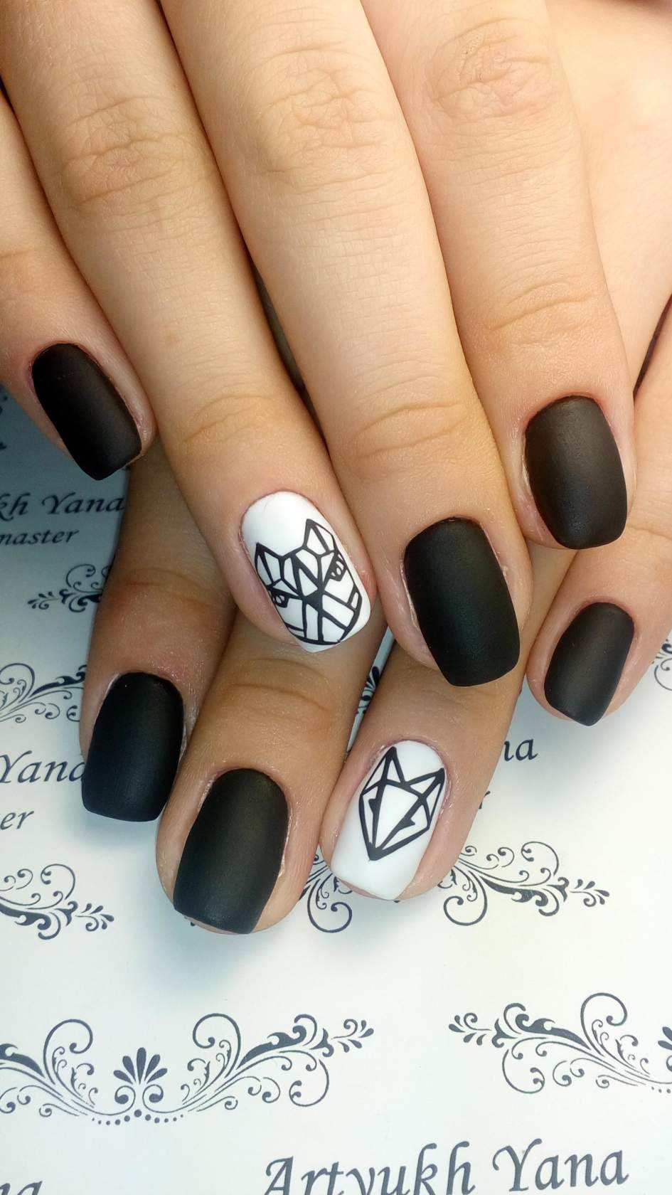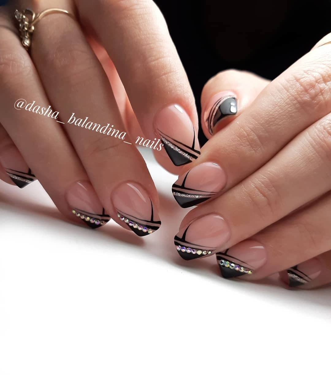 Сочетание чёрного и белого лака в геометрическом дизайне 2021
