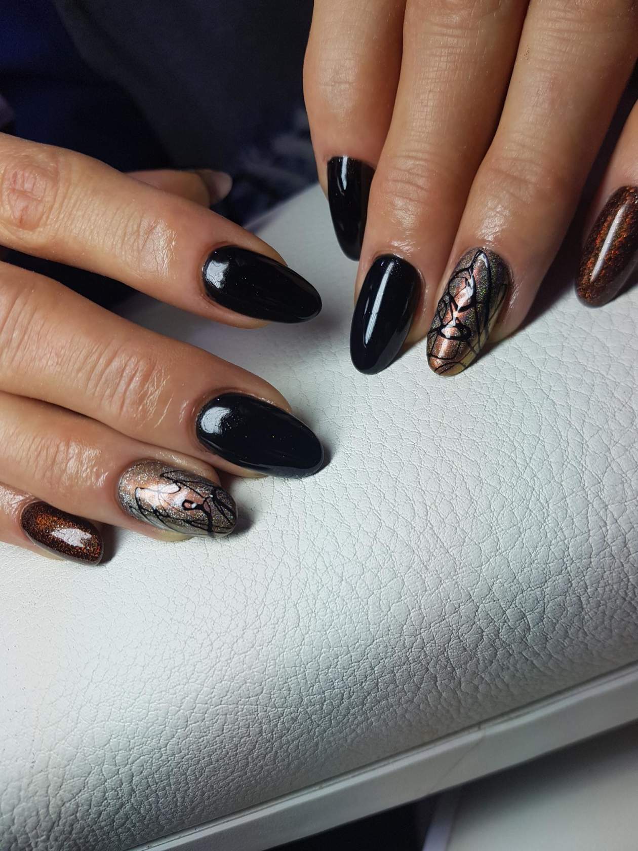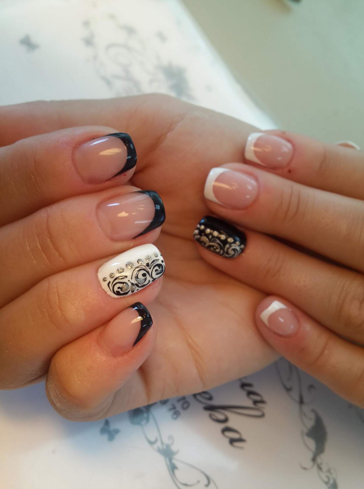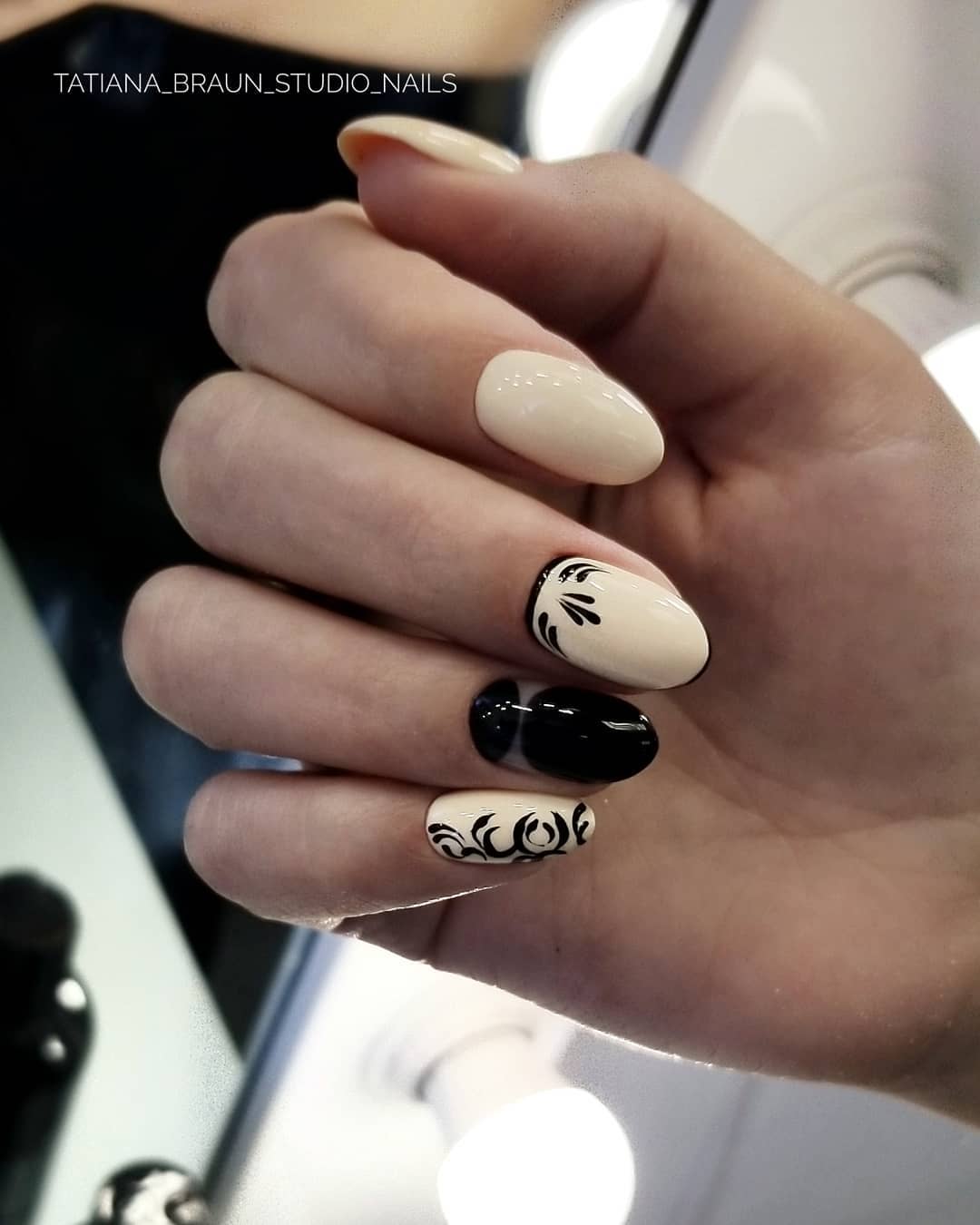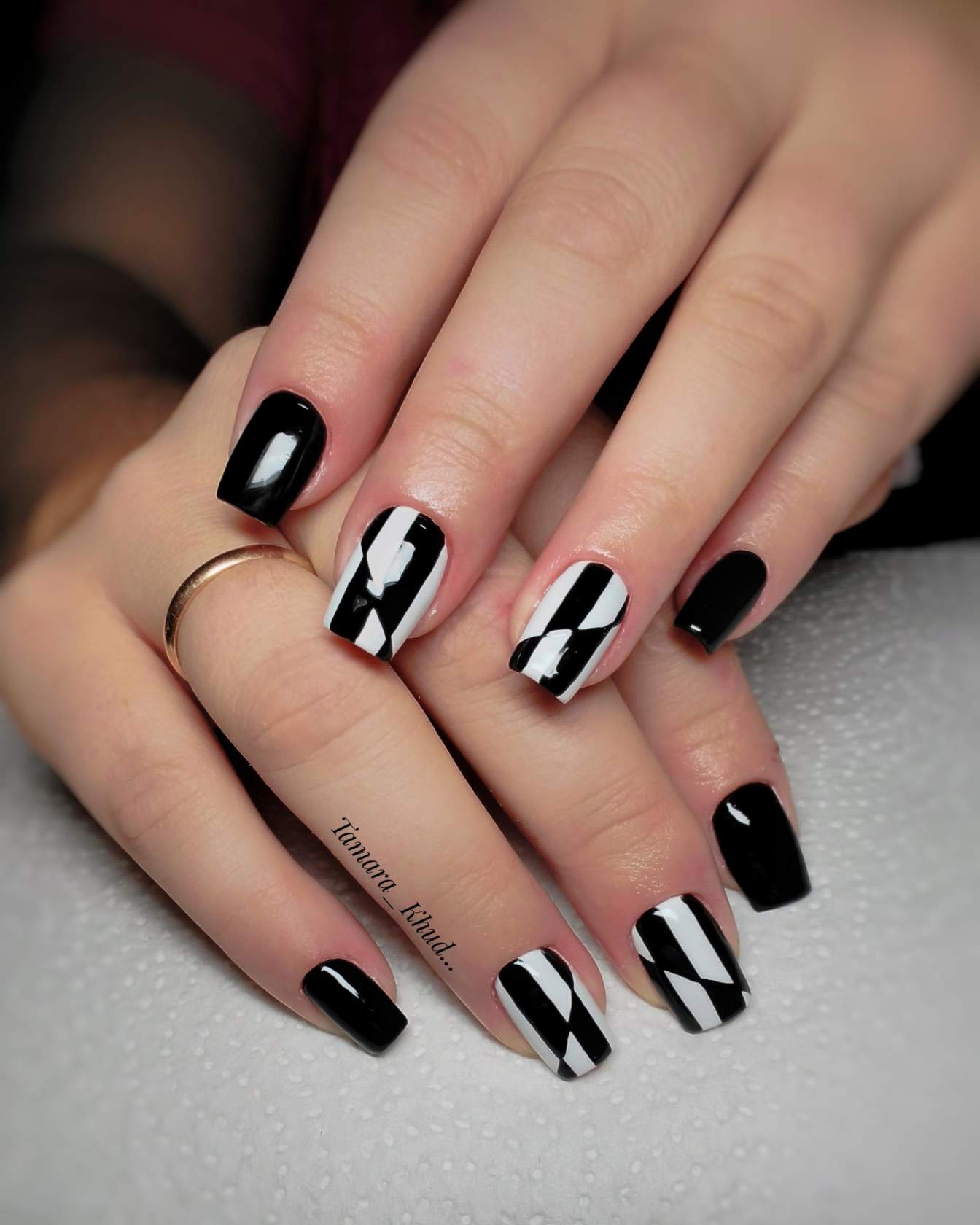 Сочетание чёрного и белого лака в геометрическом дизайне 2021