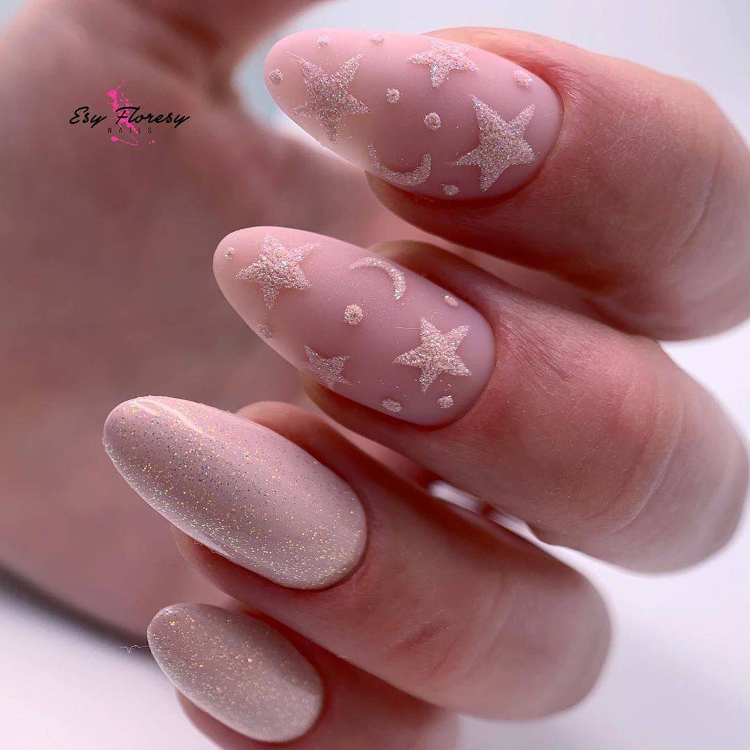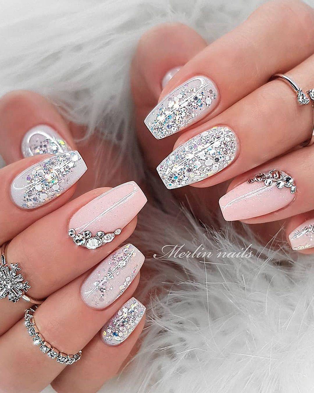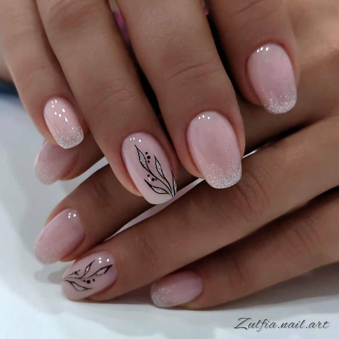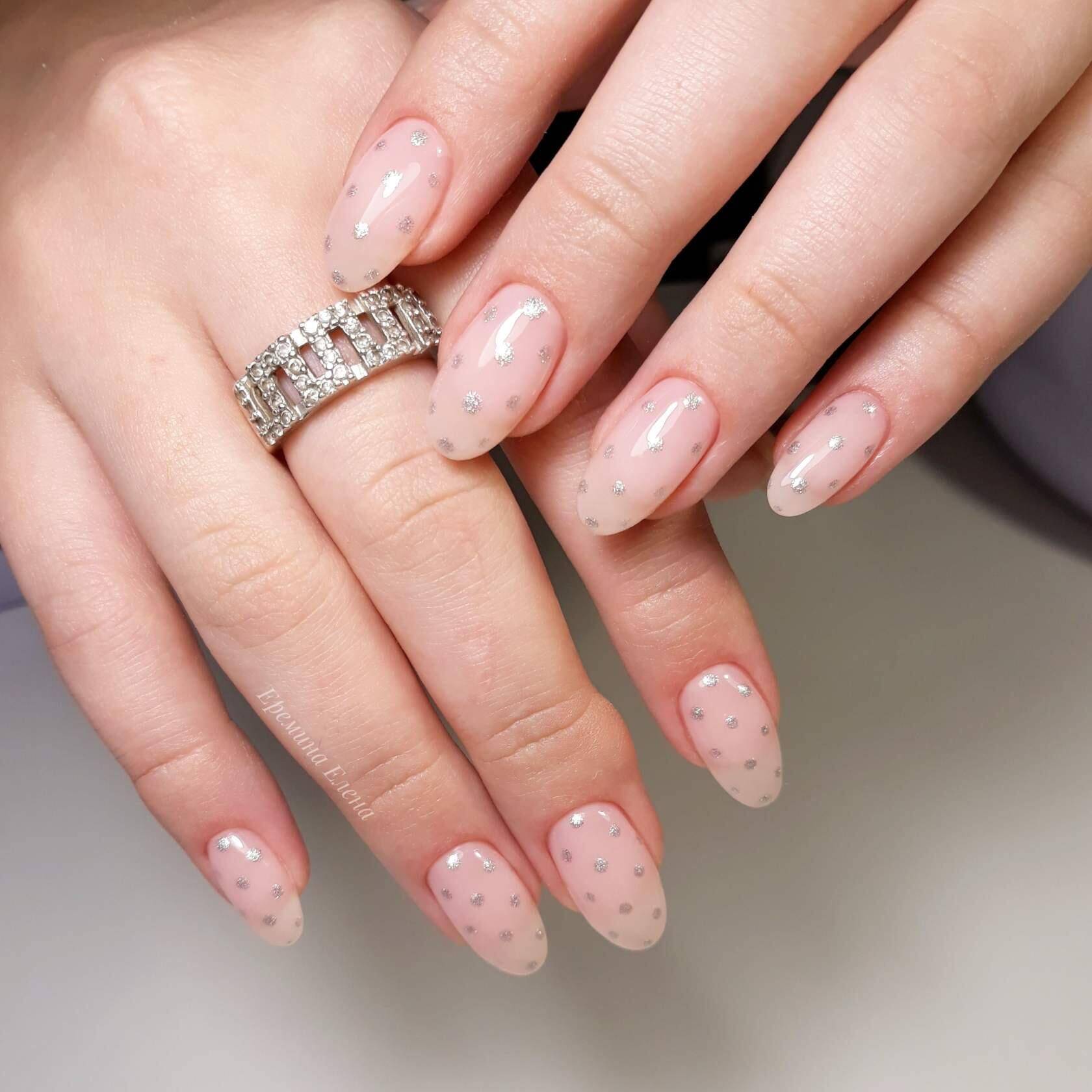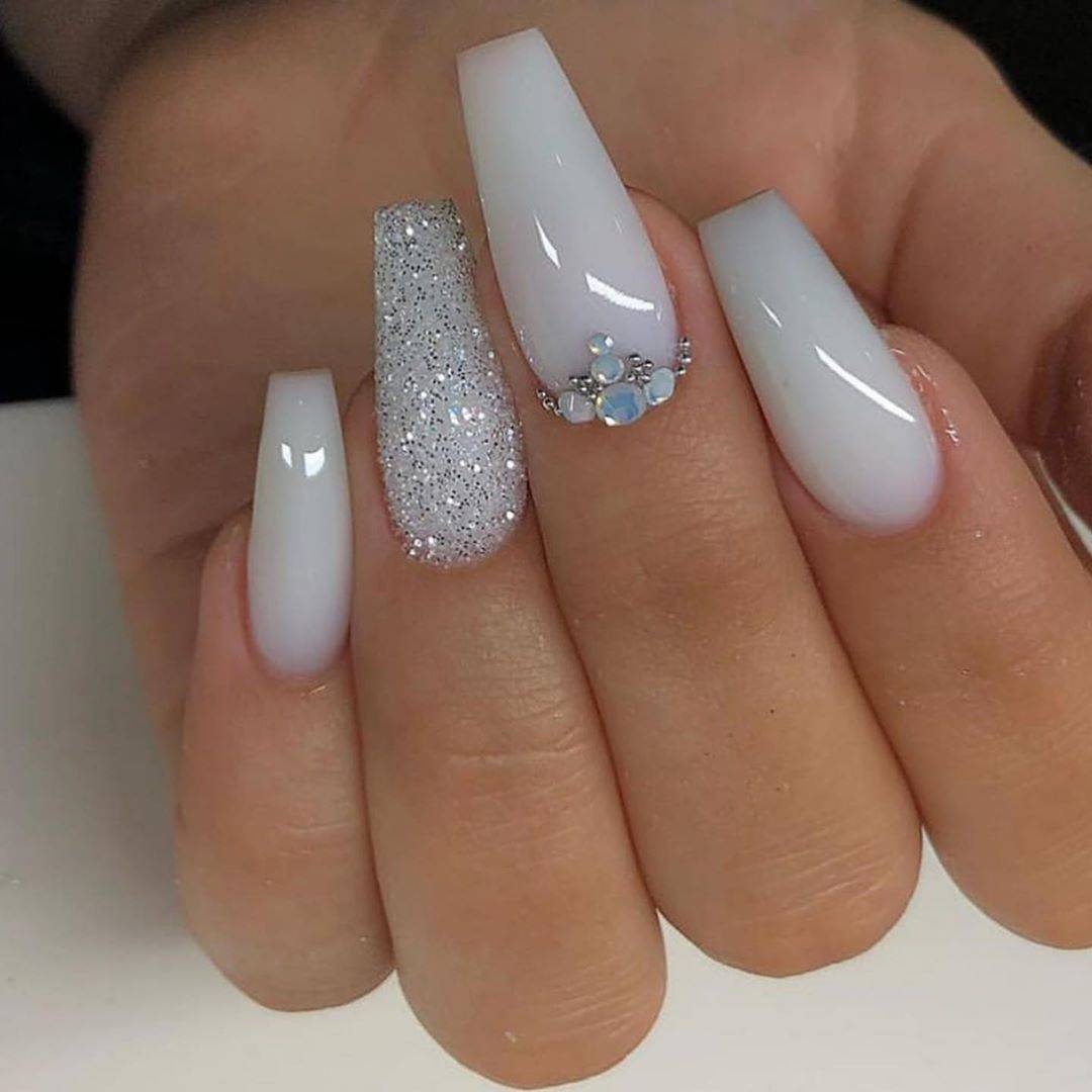 Модный молочный маникюр с блёстками – особенности оформления и стильные тренды