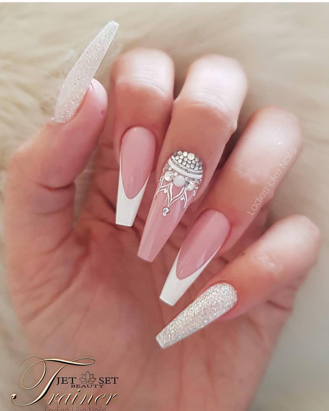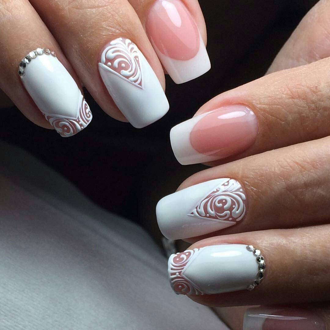 Белый маникюр с розовым – это классика. Именно такое сочетание цветов чаще всего выбираю невесты, а также девушки ля создания повседневного образа.