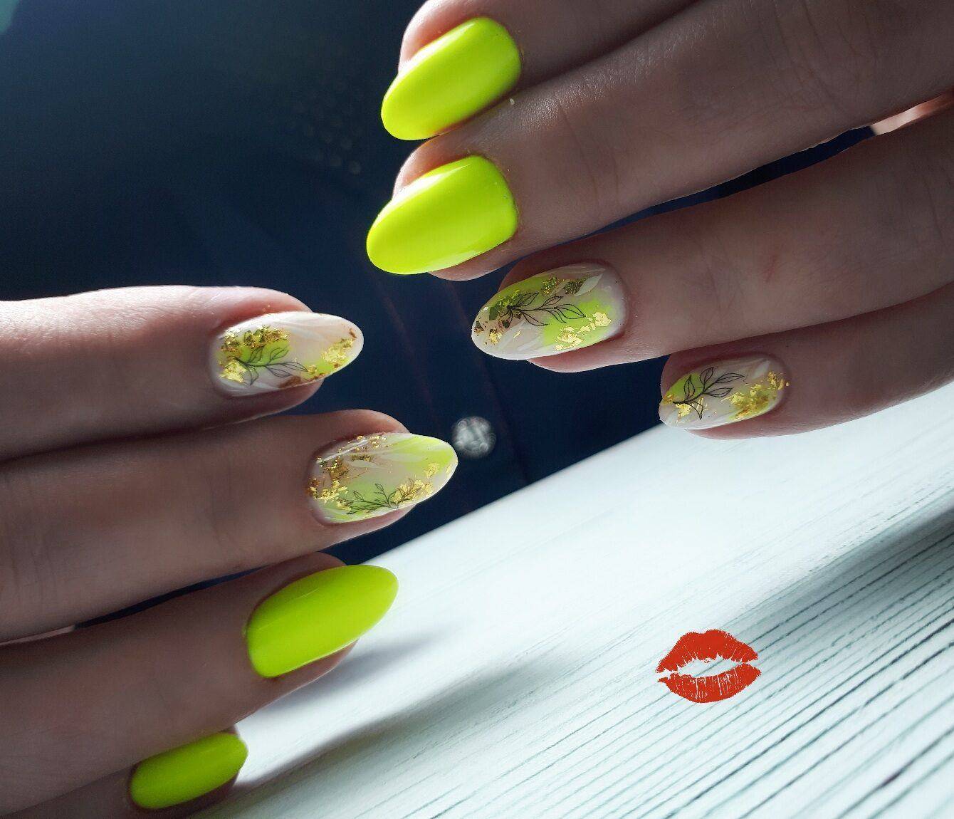 Белый с кислотными оттенками. Кислотные цвета – это тренд сезона не только в одежде, но и в маникюре