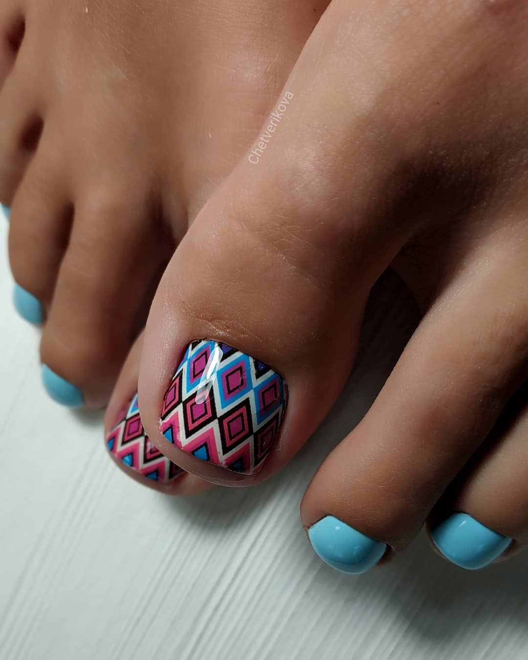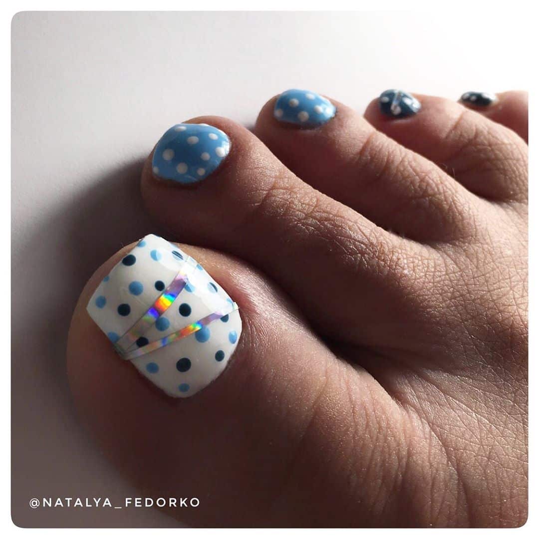 Поэтому к любому из выбранных оттенков голубого лака будет нетрудно подобрать дополнительный цвет, который дополнит педикюр или сделает акцент на конкретном дизайне.