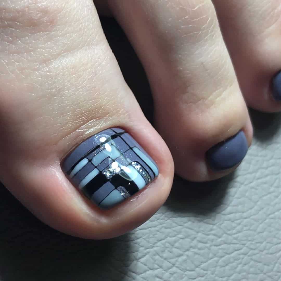 Вариациями дизайна голубого педикюра с другими тонами отдавайте предпочтение черному лаку. Чёрный стильно подчёркивает красоту педикюра и светлых оттенков голубого цвета.