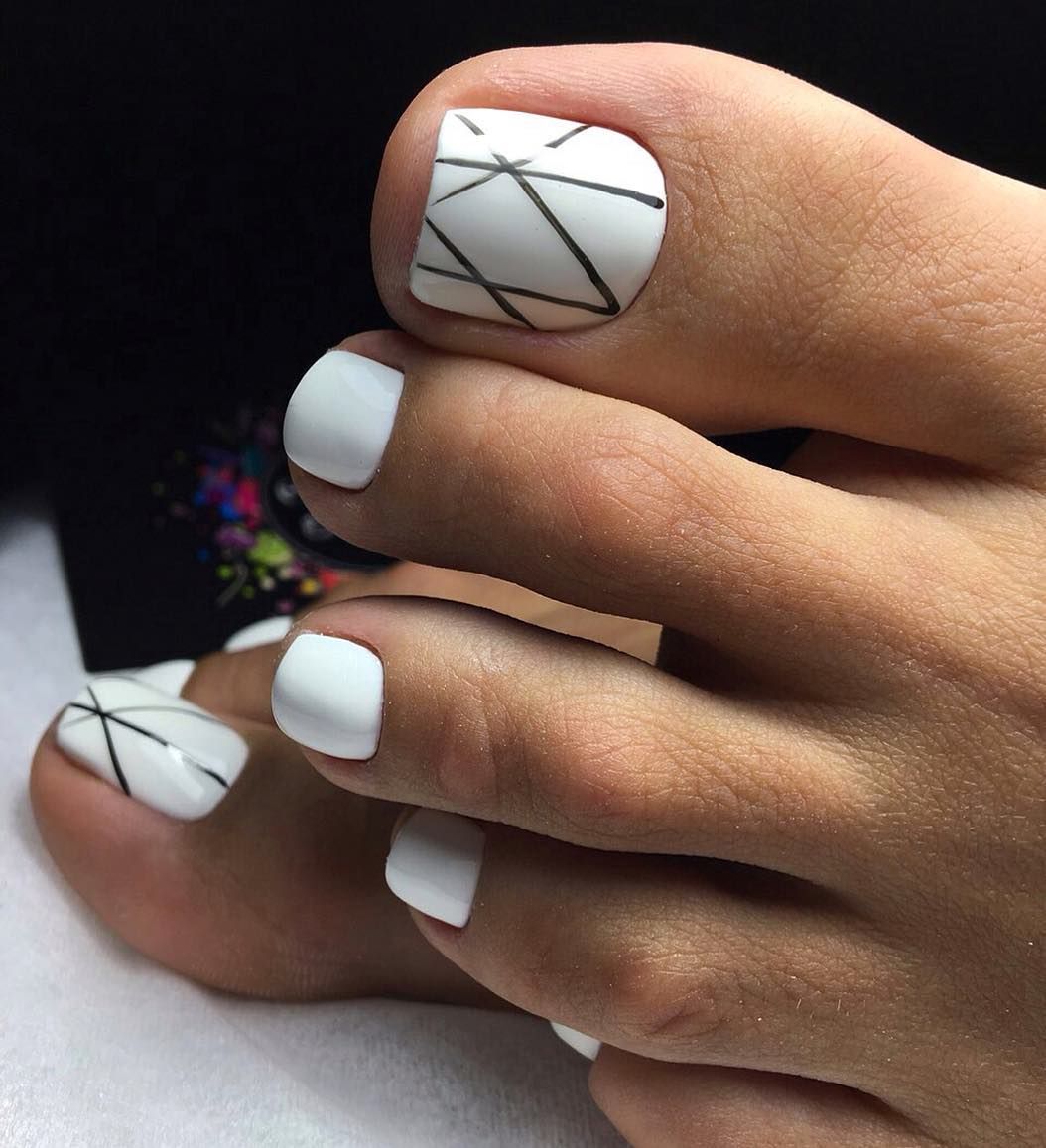 Модный белый педикюр шеллаком