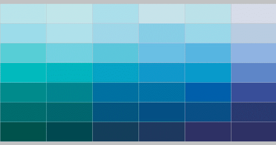 Если говорить о палитре голубого цвета, то стоит заметить, что она очень широка. Начинается она от самых светлых, нежно-голубых небесных оттенков и заканчивается тёмными, сизыми оттенками морской волны и васильков.