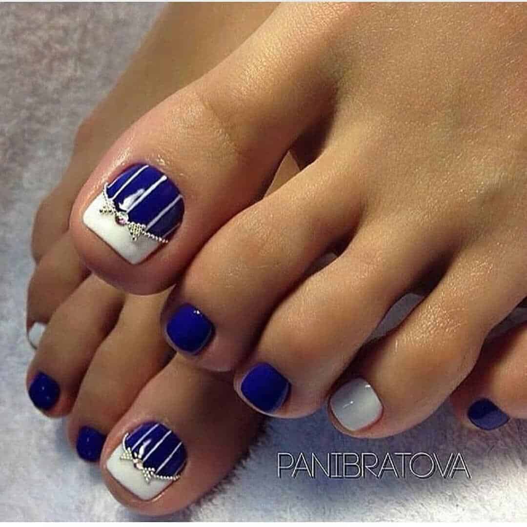 Синий педикюр можно смело считать модным и актуальным в любое время года. Вы можете украсить ноготки однотонным лаком, с использованием светлых или темных оттенков, а можете создать оригинальный красивый педикюр, который будет радовать взгляд и развеивать скуку.