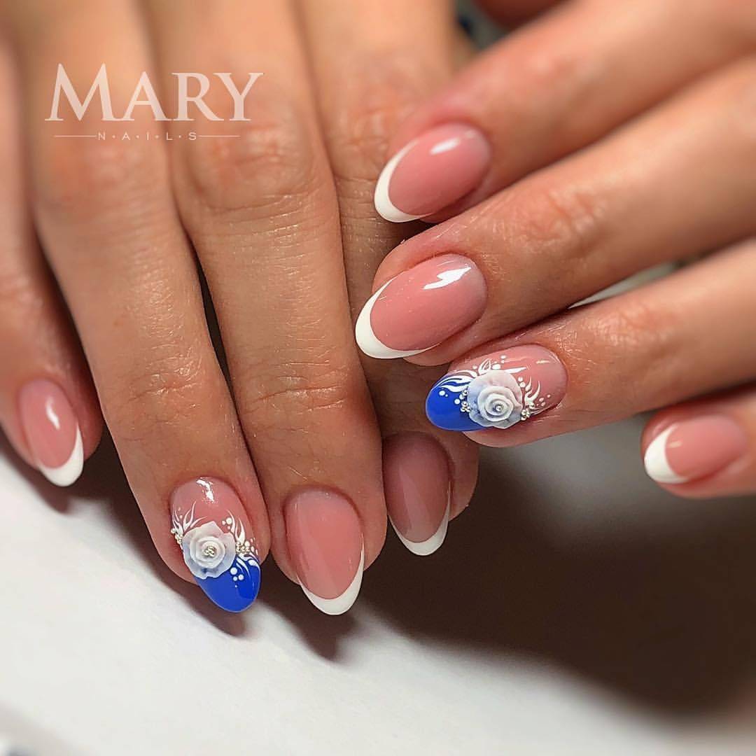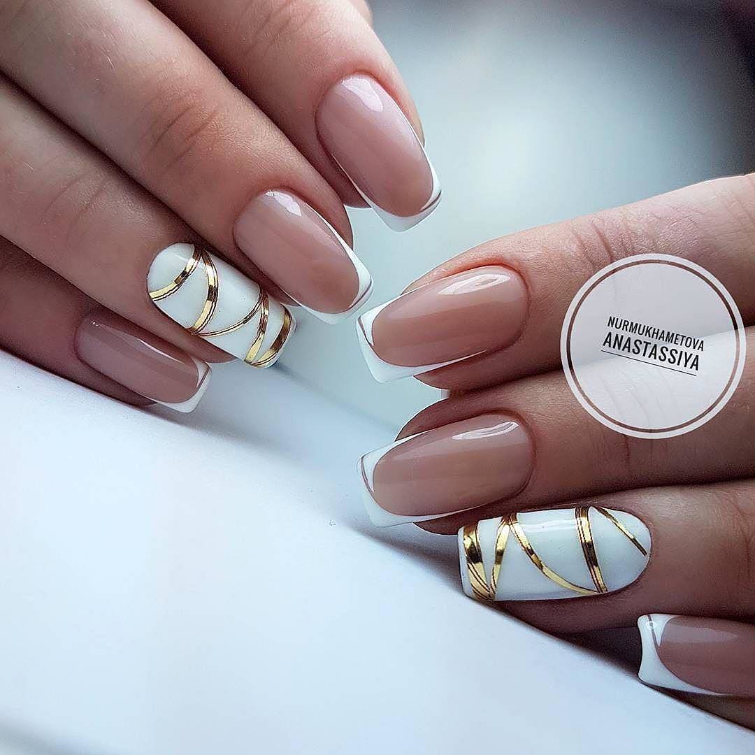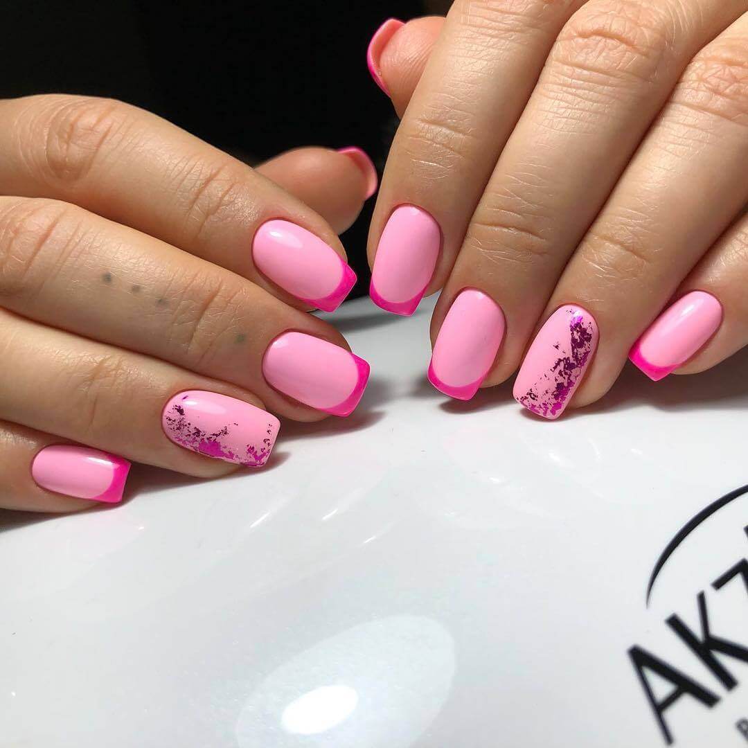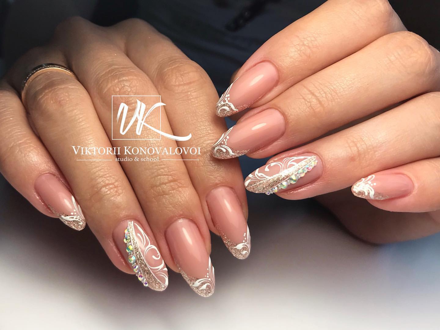 Как и всегда, французский маникюр достаточно актуальный и востребованный. Причем речь идет не только о классическом варианте, но и о современных решениях. Не слишком крупные рисунки прекрасно смотрятся на нескольких ноготках. В основном среди них цветочные и флористические мотивы, геометрия, абстракция и вензеля. В летнем сезоне френч часто дополняют изображения фруктов, ягод и бабочек. Поскольку данный вид дизайна часто делают на свадьбу, то рисунок также должен быть тематическим. Яркости маникюру придают блестки, но интенсивность зависит от выбранного варианта и плотности нанесения. Шиммер, глиттер и конфетти дают совершенно разный эффект на ноготках.