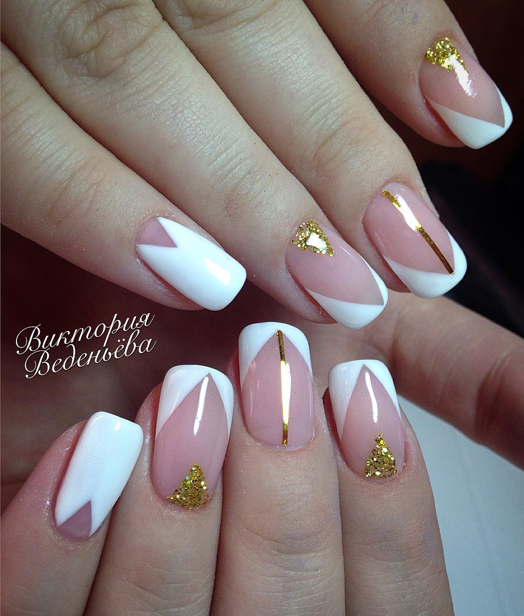 Не менее прекрасно смотрится геометрический и абстрактный дизайн. Вместе с блестками он буквально преображает на глазах и смотрится совершенно по-новому. Но обратите внимание на то, что декора не должно быть слишком много. Ведь главное, чтобы маникюр смотрелся гармонично.