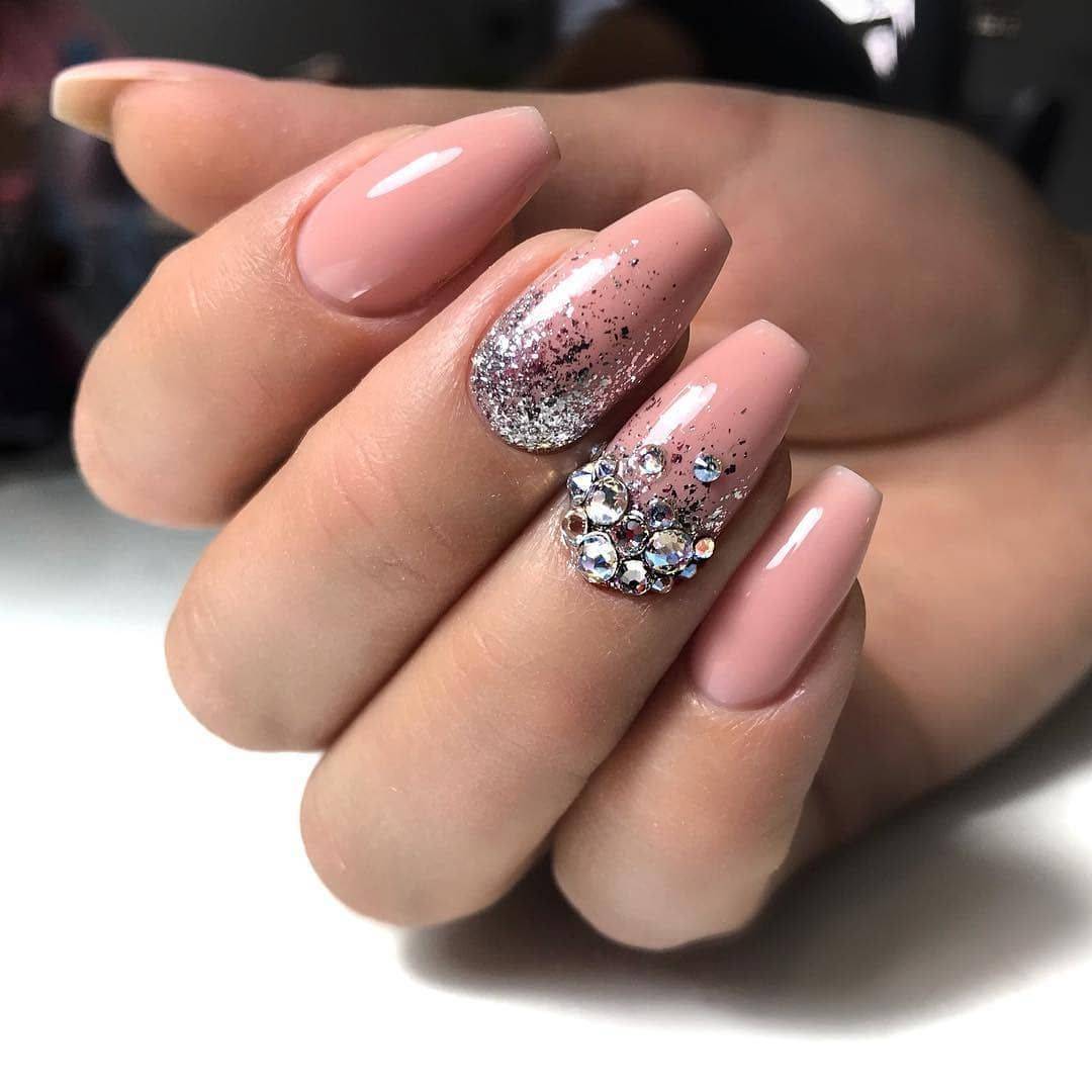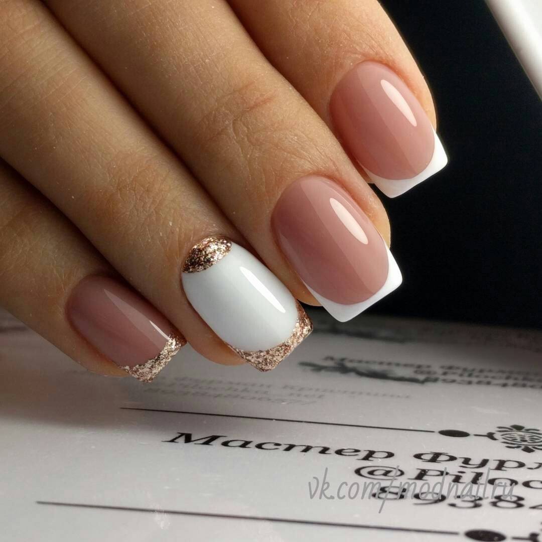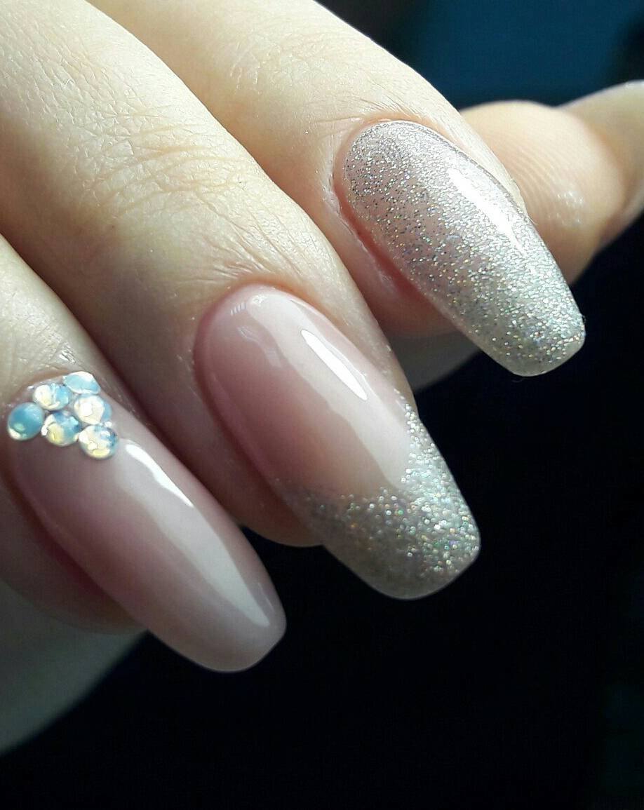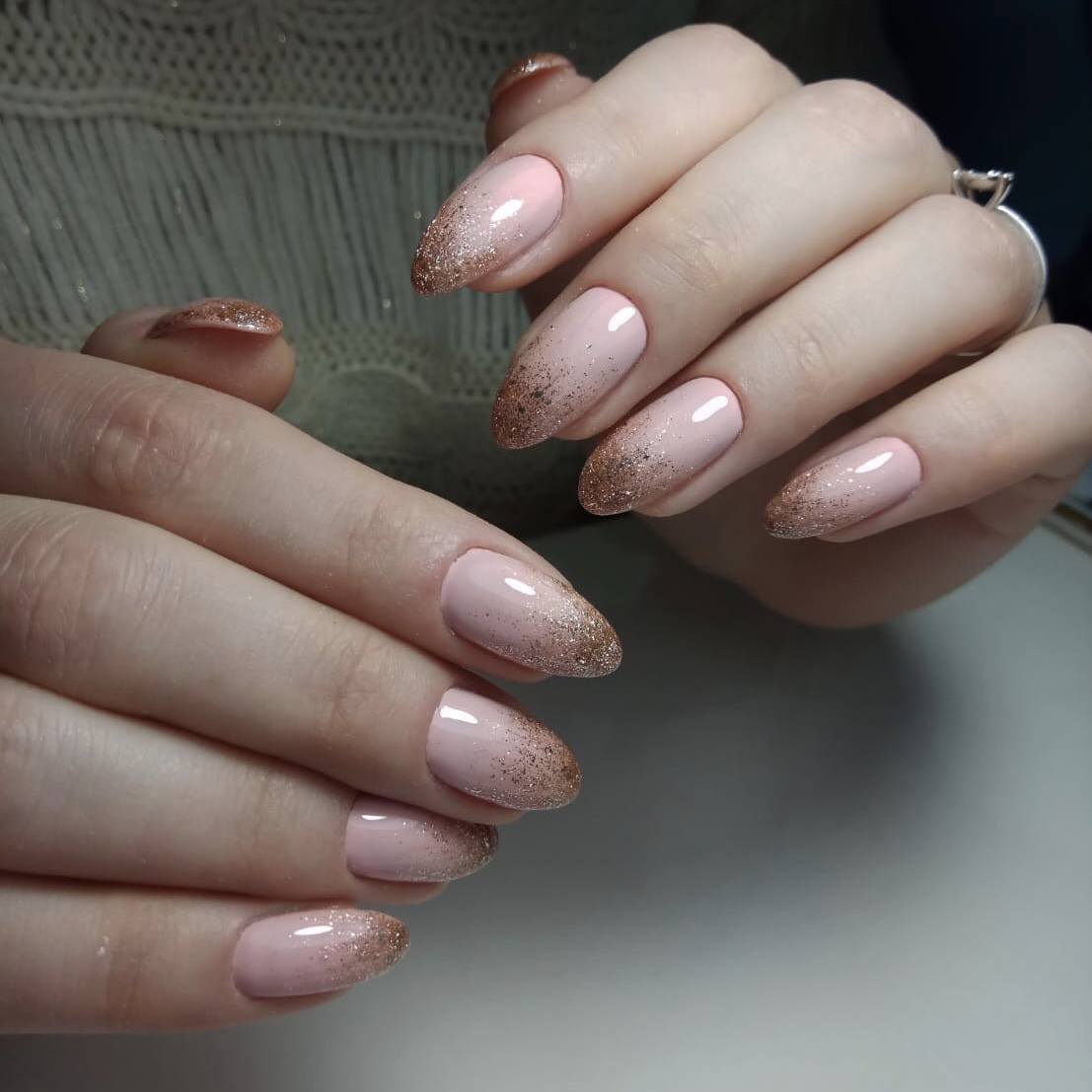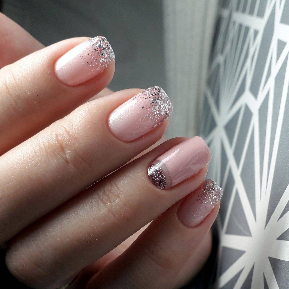 Нежный дизайн с глиттером – простой маникюр, который можно выполнить даже дома
