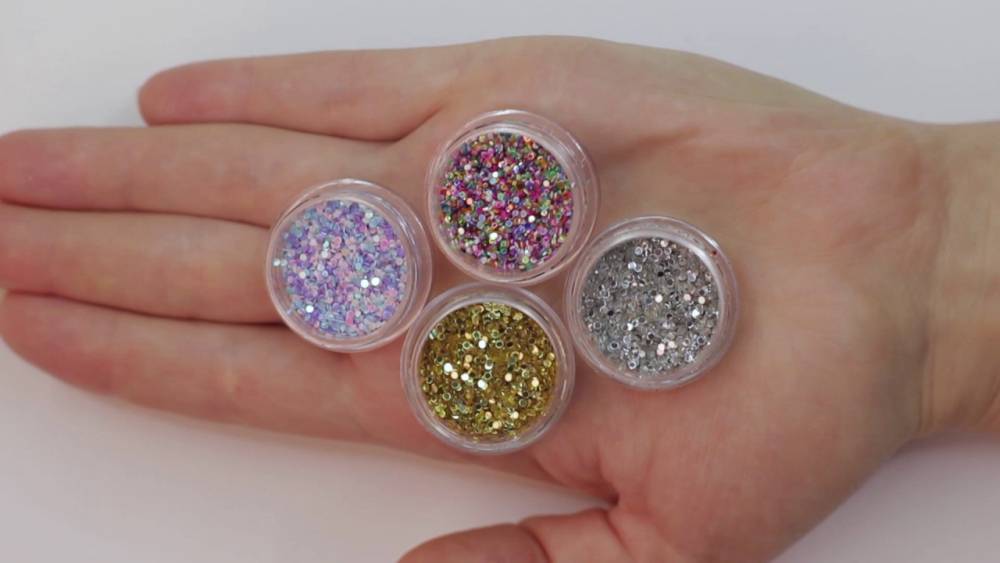 Существует несколько типов глиттера, которые определяются типом выпуска, размером, а, соответственно, и характером нанесения. Основные виды глиттеров для маникюра: