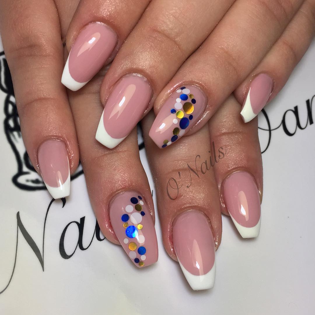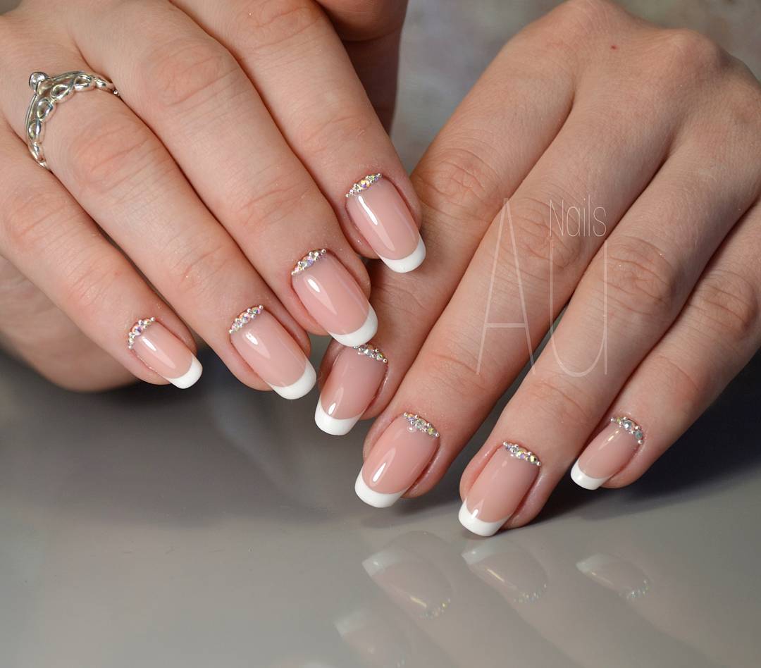 Где расположить блестки, чтобы они не испортили обаяние французского маникюра? Есть несколько вариантов: