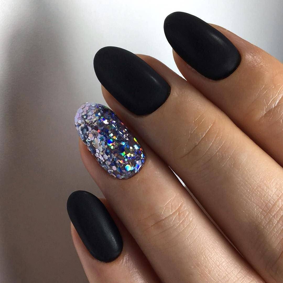 Популярный вариант – глиттер на ногтях в качестве акцента на 1-2 ноготках. Этот вариант одинаково хорош и для длинных, и для коротких ногтей.