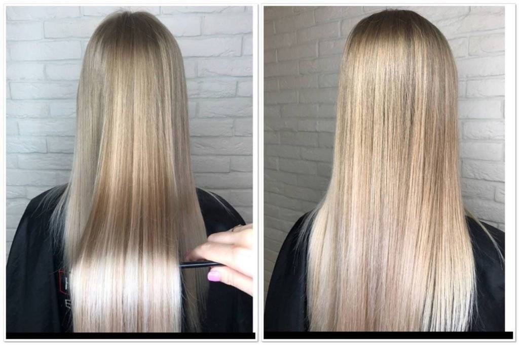 Безопасно выполнить покраску можно спустя 3 недели после посещения салона, так как через это время реконструирующий раствор выполняет основное действие на волосках и в корневой системе.