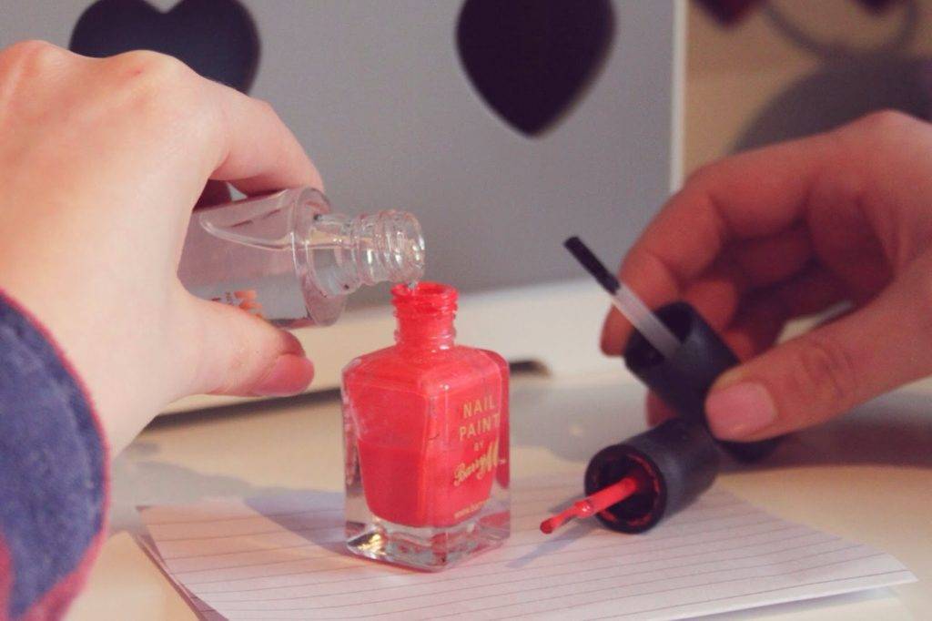 Чтобы не тратить деньги на специальные вещества, для разбавления лака можно прибегнуть к помощи простой жидкости для удаления покрытия с поверхности ногтевых пластин. Но, есть некоторая опасность при применении такого метода: