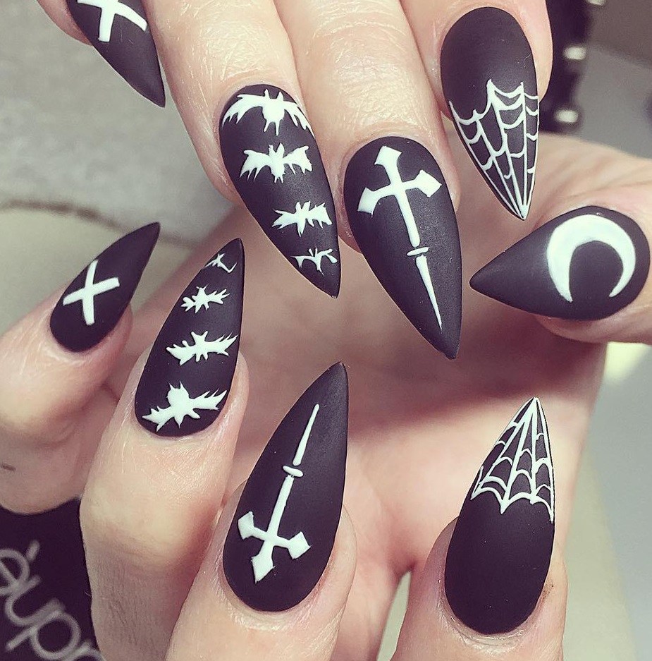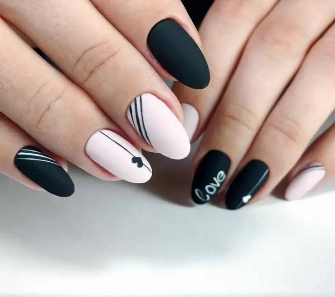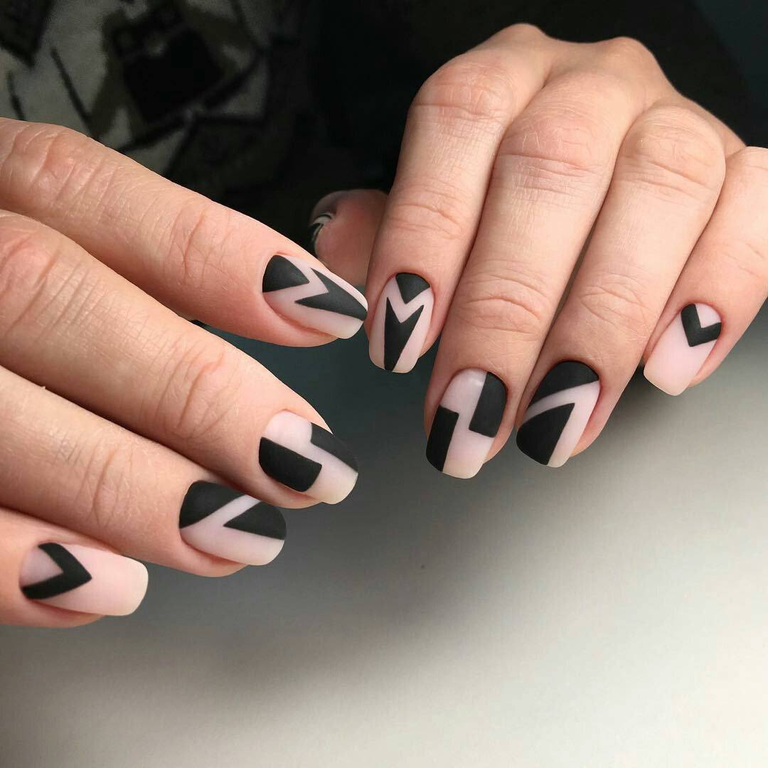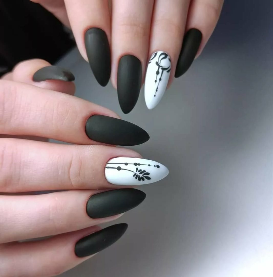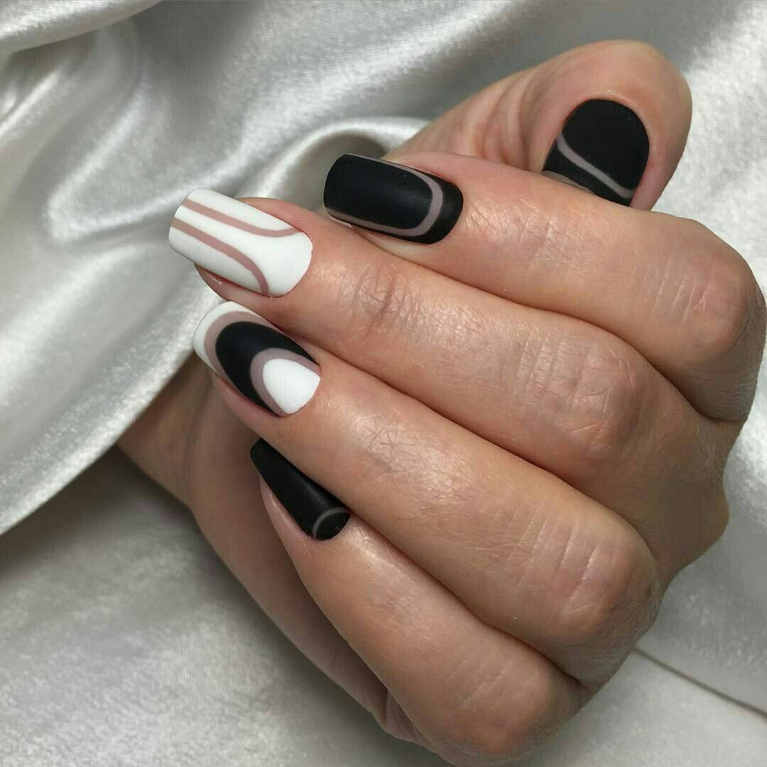 Обворожительный матовый маникюр в чёрно-белом исполнении