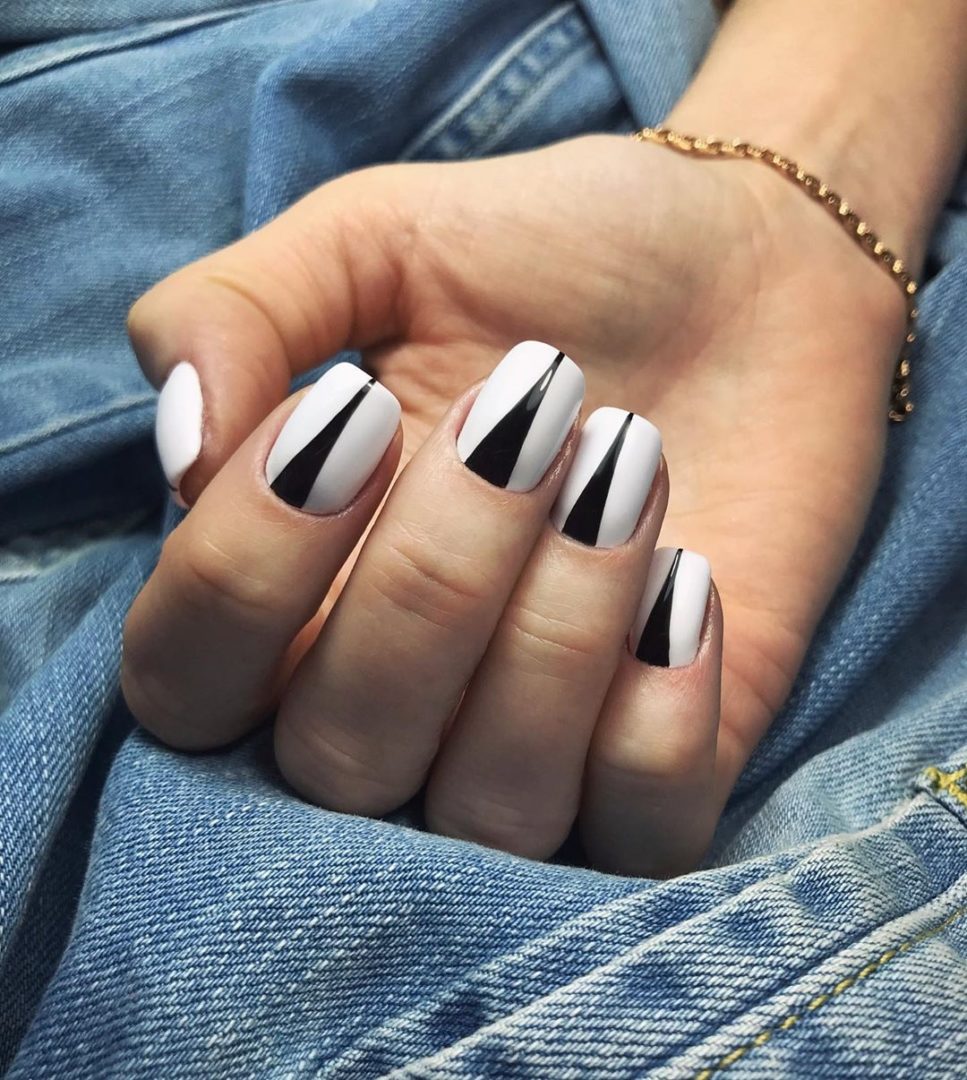 Набирающая популярность техника маникюра color block также идеально подходит для черно-белого маникюра.